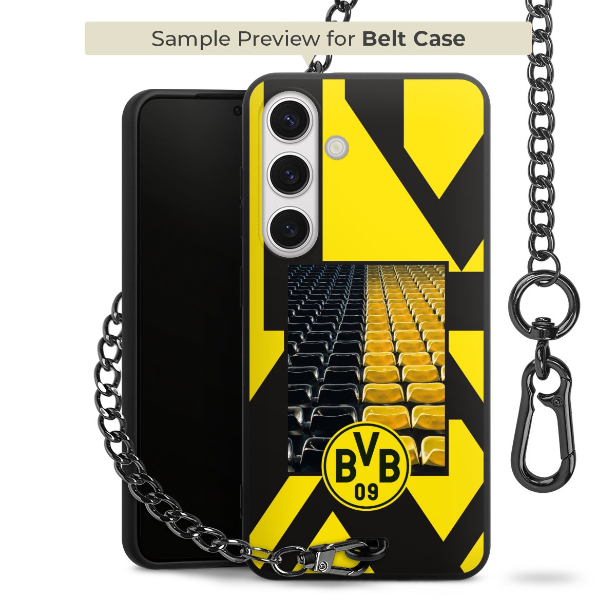 Ob im Alltag, beim Feiern mit Deinen Jungs oder auf Festivals – mit dem superpraktischen Belt Case steckst Du alle Sorgen um Diebstahl und Spider-App ganz entspannt in die Tasche. Es besteht aus einem coolen mattschwarzen Silikon Premium Case, dem Du ein individuelles Design verpassen kannst, und einer daran befestigten Kette in lässiger Gunmetal-Optik. Mit dem Karabiner auf der anderen Seite klickst Du die Kette mit einem Handgriff an Deine Gürtelschlaufe und schon ist Dein Smartphone sicher und stets griffbereit in der Hosentasche verstaut.