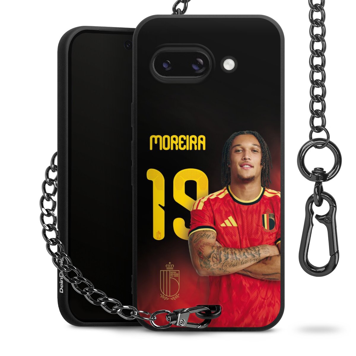 Die mattschwarze Silikon-Handyhülle besteht aus robustem TPU (thermoplastisches Polyurethan). Sie ist flexibel und schützt Dein Smartphone vor Stößen und Kratzern. Die Kette sowie der Karabinerhaken sind aus Metall in Gunmetal-Optik gefertigt. Für dieses Produkt kommen ausschließlich TÜV-geprüfte Materialien zum Einsatz.