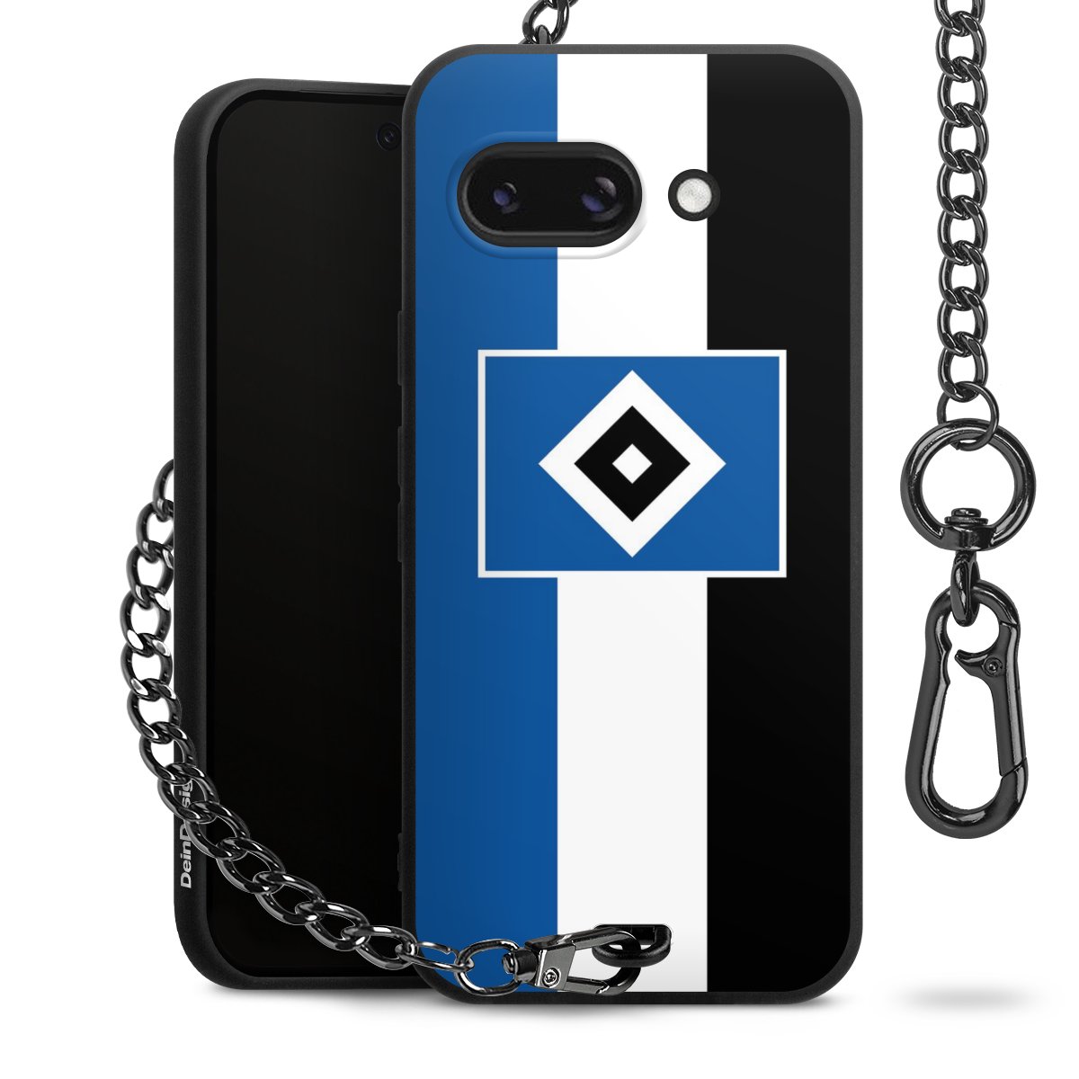 Die mattschwarze Silikon-Handyhülle besteht aus robustem TPU (thermoplastisches Polyurethan). Sie ist flexibel und schützt Dein Smartphone vor Stößen und Kratzern. Die Kette sowie der Karabinerhaken sind aus Metall in Gunmetal-Optik gefertigt. Für dieses Produkt kommen ausschließlich TÜV-geprüfte Materialien zum Einsatz.