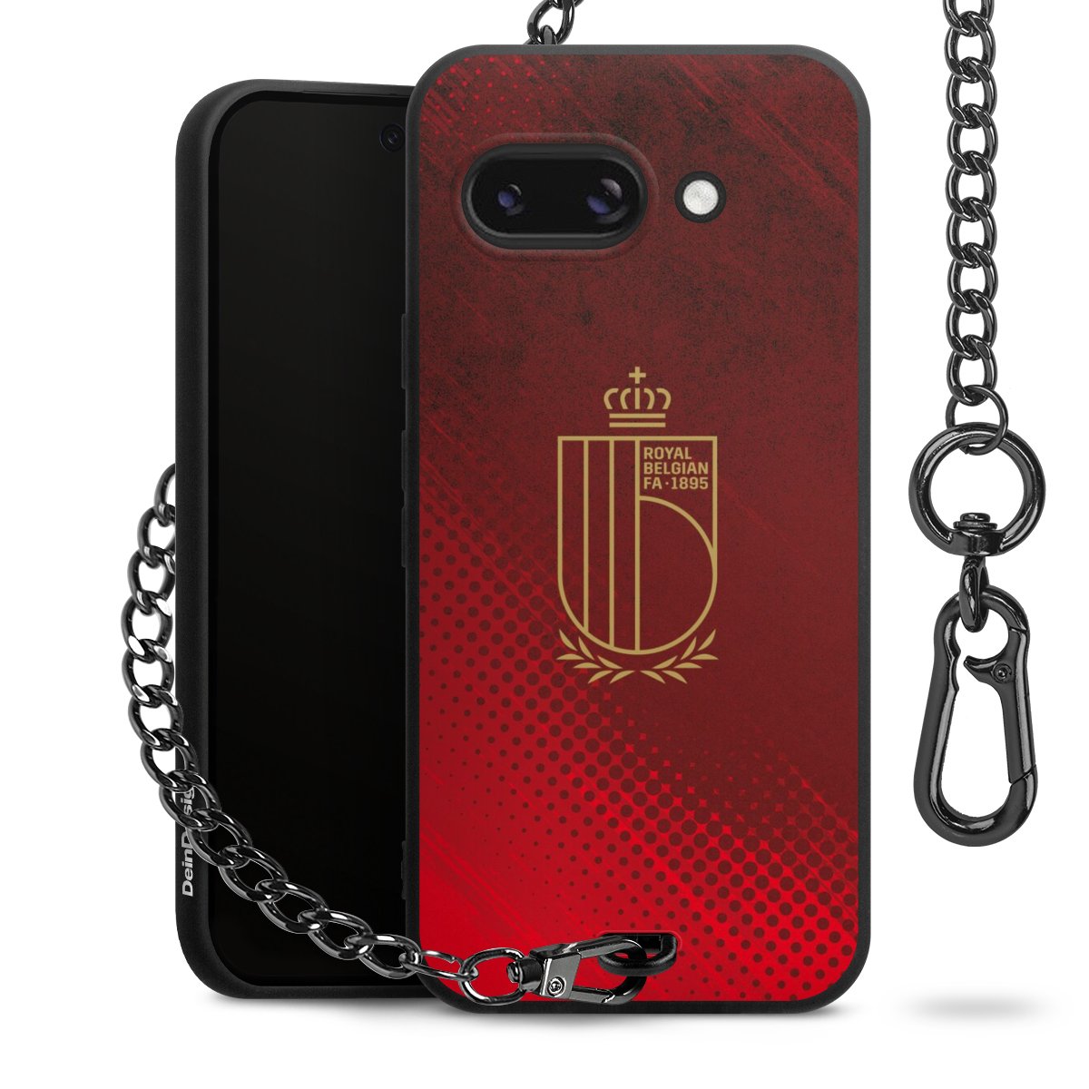 Die mattschwarze Silikon-Handyhülle besteht aus robustem TPU (thermoplastisches Polyurethan). Sie ist flexibel und schützt Dein Smartphone vor Stößen und Kratzern. Die Kette sowie der Karabinerhaken sind aus Metall in Gunmetal-Optik gefertigt. Für dieses Produkt kommen ausschließlich TÜV-geprüfte Materialien zum Einsatz.