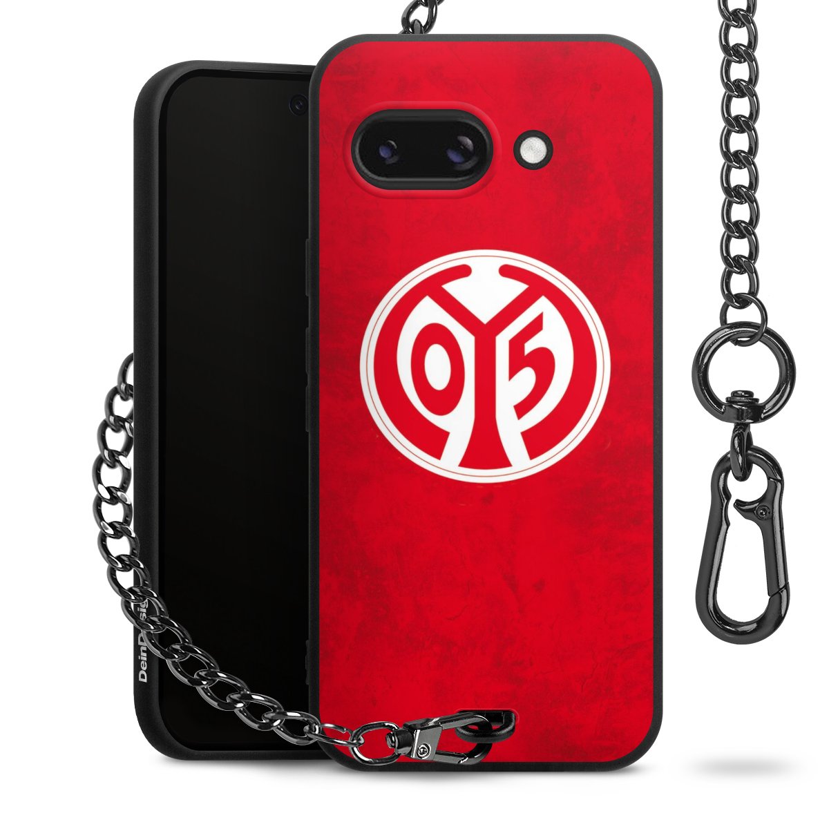 Die mattschwarze Silikon-Handyhülle besteht aus robustem TPU (thermoplastisches Polyurethan). Sie ist flexibel und schützt Dein Smartphone vor Stößen und Kratzern. Die Kette sowie der Karabinerhaken sind aus Metall in Gunmetal-Optik gefertigt. Für dieses Produkt kommen ausschließlich TÜV-geprüfte Materialien zum Einsatz.