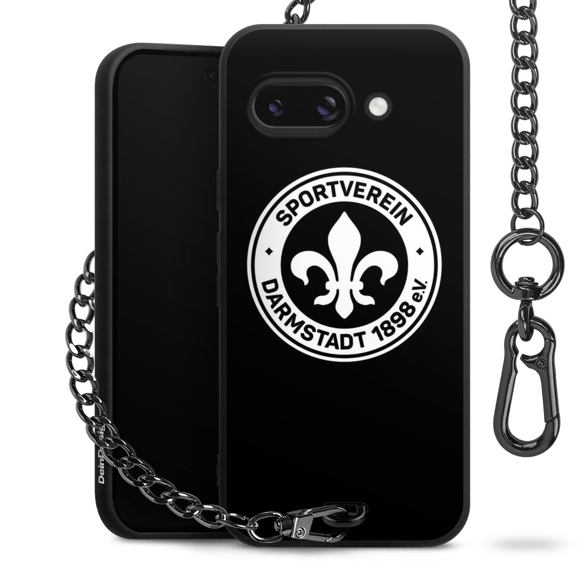 Die mattschwarze Silikon-Handyhülle besteht aus robustem TPU (thermoplastisches Polyurethan). Sie ist flexibel und schützt Dein Smartphone vor Stößen und Kratzern. Die Kette sowie der Karabinerhaken sind aus Metall in Gunmetal-Optik gefertigt. Für dieses Produkt kommen ausschließlich TÜV-geprüfte Materialien zum Einsatz.