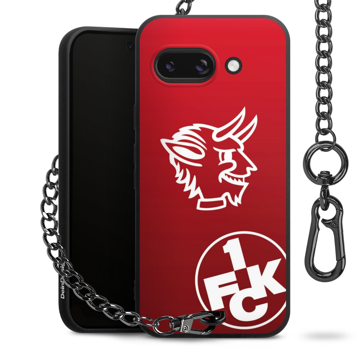 Die mattschwarze Silikon-Handyhülle besteht aus robustem TPU (thermoplastisches Polyurethan). Sie ist flexibel und schützt Dein Smartphone vor Stößen und Kratzern. Die Kette sowie der Karabinerhaken sind aus Metall in Gunmetal-Optik gefertigt. Für dieses Produkt kommen ausschließlich TÜV-geprüfte Materialien zum Einsatz.