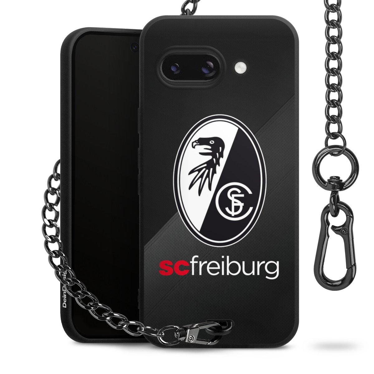 Bei DeinDesign kannst Du Dir eine individuelle SC-Freiburg-Handyhülle aussuchen, auf der das stilvolle schwarz-weiße Logo mit dem Greifenkopf zu sehen ist. Durch eine solche Hülle erhält Dein Smartphone ein unverkennbar individuelles Design. Der SC-Freiburg-Shop bietet lizensierte Fanartikel für alle Fans der Breisgau-Brasilianer.
