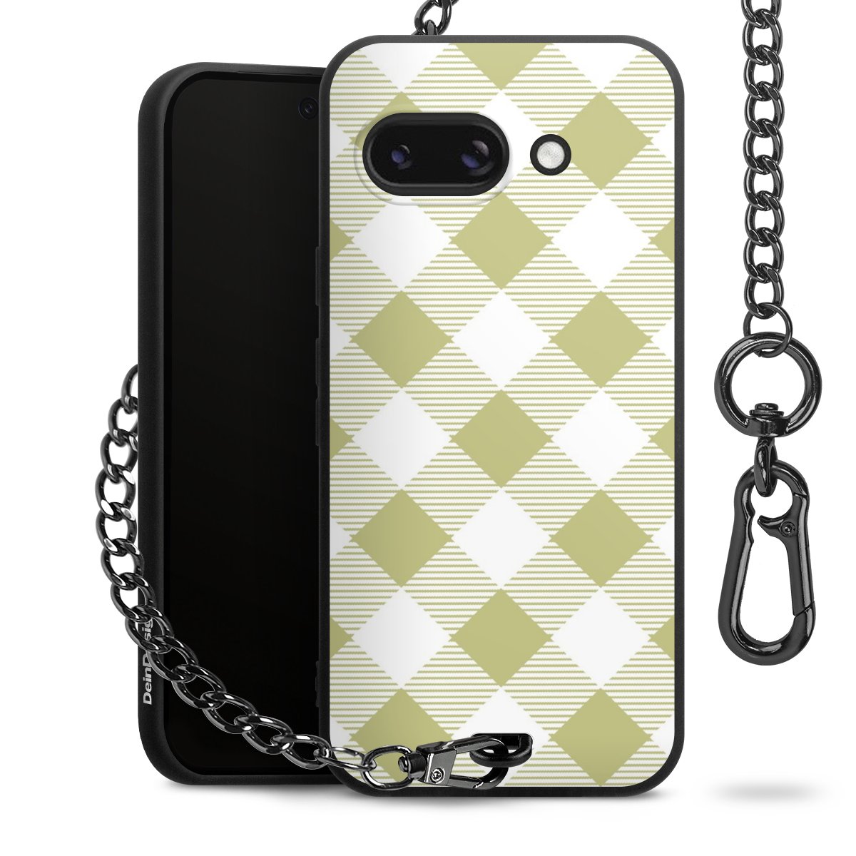 Die mattschwarze Silikon-Handyhülle besteht aus robustem TPU (thermoplastisches Polyurethan). Sie ist flexibel und schützt Dein Smartphone vor Stößen und Kratzern. Die Kette sowie der Karabinerhaken sind aus Metall in Gunmetal-Optik gefertigt. Für dieses Produkt kommen ausschließlich TÜV-geprüfte Materialien zum Einsatz.