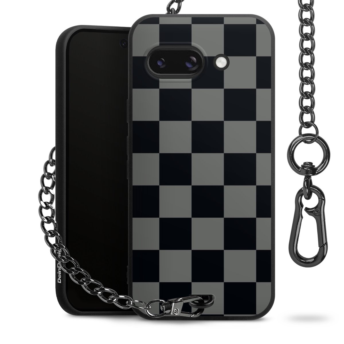 - Mattschwarze Handyhülle mit Metallkette