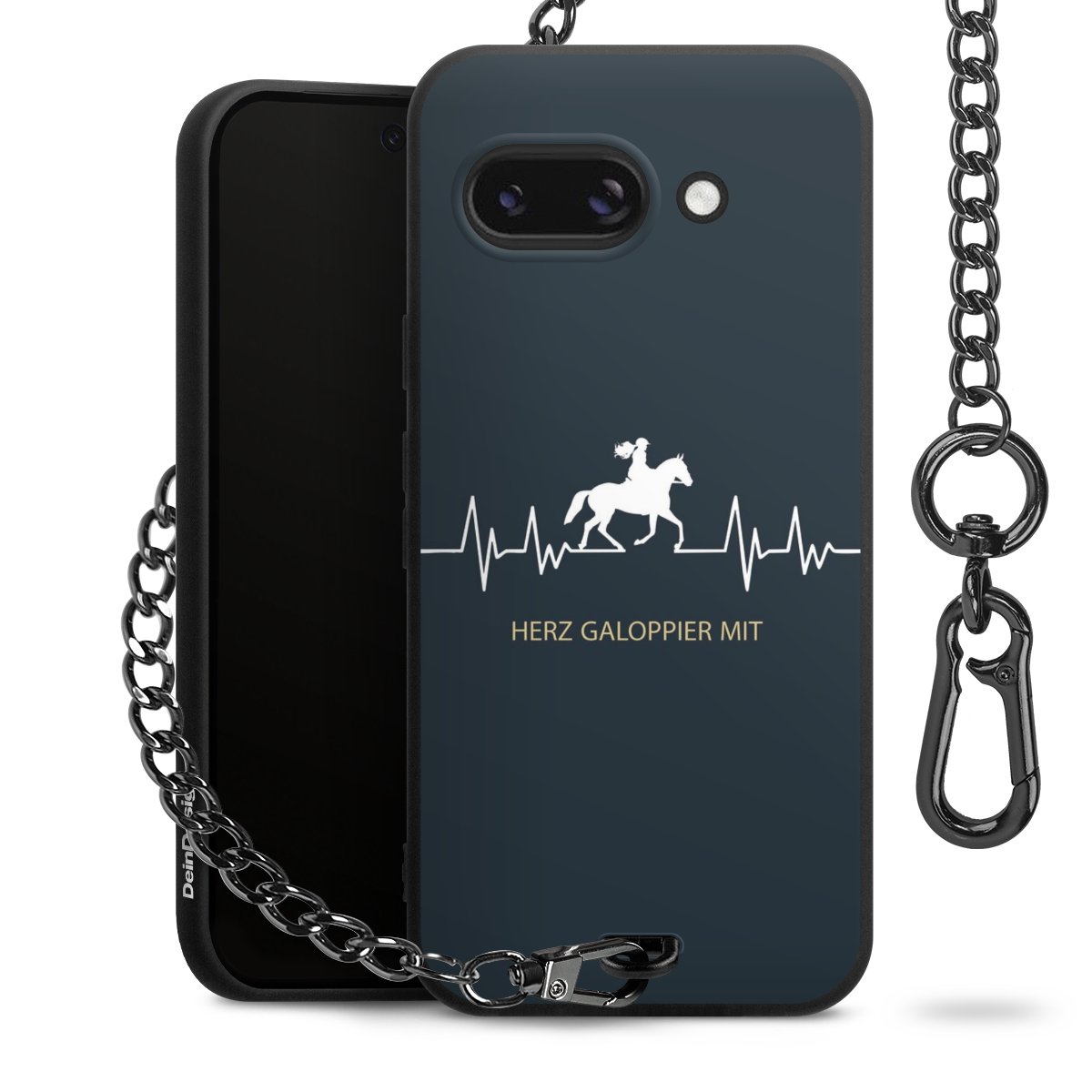 Die mattschwarze Silikon-Handyhülle besteht aus robustem TPU (thermoplastisches Polyurethan). Sie ist flexibel und schützt Dein Smartphone vor Stößen und Kratzern. Die Kette sowie der Karabinerhaken sind aus Metall in Gunmetal-Optik gefertigt. Für dieses Produkt kommen ausschließlich TÜV-geprüfte Materialien zum Einsatz.