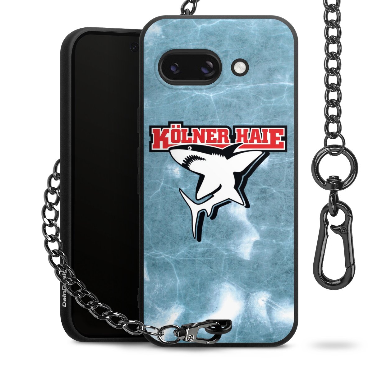 Die mattschwarze Silikon-Handyhülle besteht aus robustem TPU (thermoplastisches Polyurethan). Sie ist flexibel und schützt Dein Smartphone vor Stößen und Kratzern. Die Kette sowie der Karabinerhaken sind aus Metall in Gunmetal-Optik gefertigt. Für dieses Produkt kommen ausschließlich TÜV-geprüfte Materialien zum Einsatz.