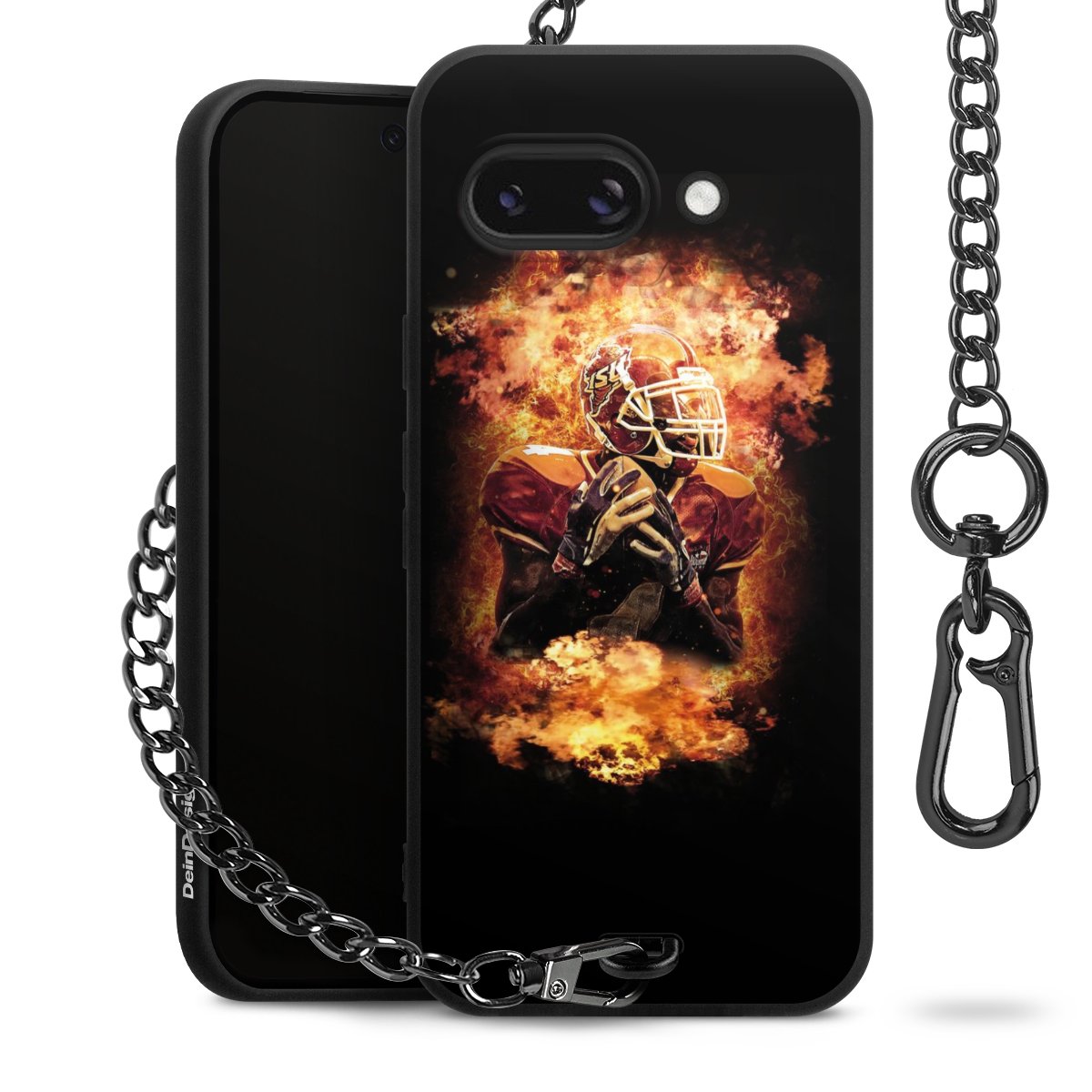 Die mattschwarze Silikon-Handyhülle besteht aus robustem TPU (thermoplastisches Polyurethan). Sie ist flexibel und schützt Dein Smartphone vor Stößen und Kratzern. Die Kette sowie der Karabinerhaken sind aus Metall in Gunmetal-Optik gefertigt. Für dieses Produkt kommen ausschließlich TÜV-geprüfte Materialien zum Einsatz.