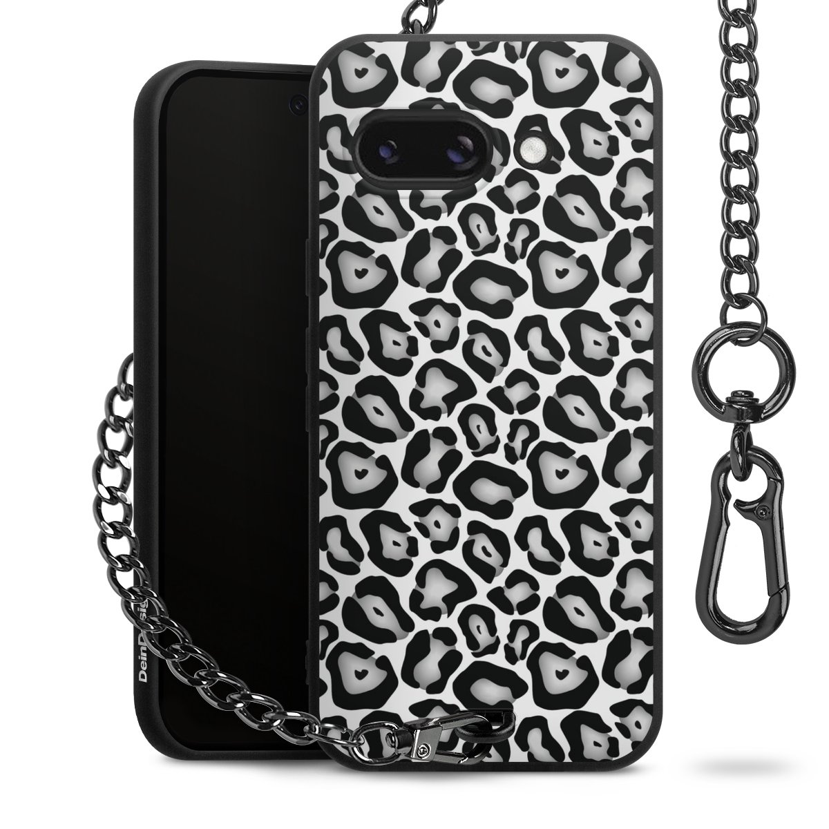 Die mattschwarze Silikon-Handyhülle besteht aus robustem TPU (thermoplastisches Polyurethan). Sie ist flexibel und schützt Dein Smartphone vor Stößen und Kratzern. Die Kette sowie der Karabinerhaken sind aus Metall in Gunmetal-Optik gefertigt. Für dieses Produkt kommen ausschließlich TÜV-geprüfte Materialien zum Einsatz.