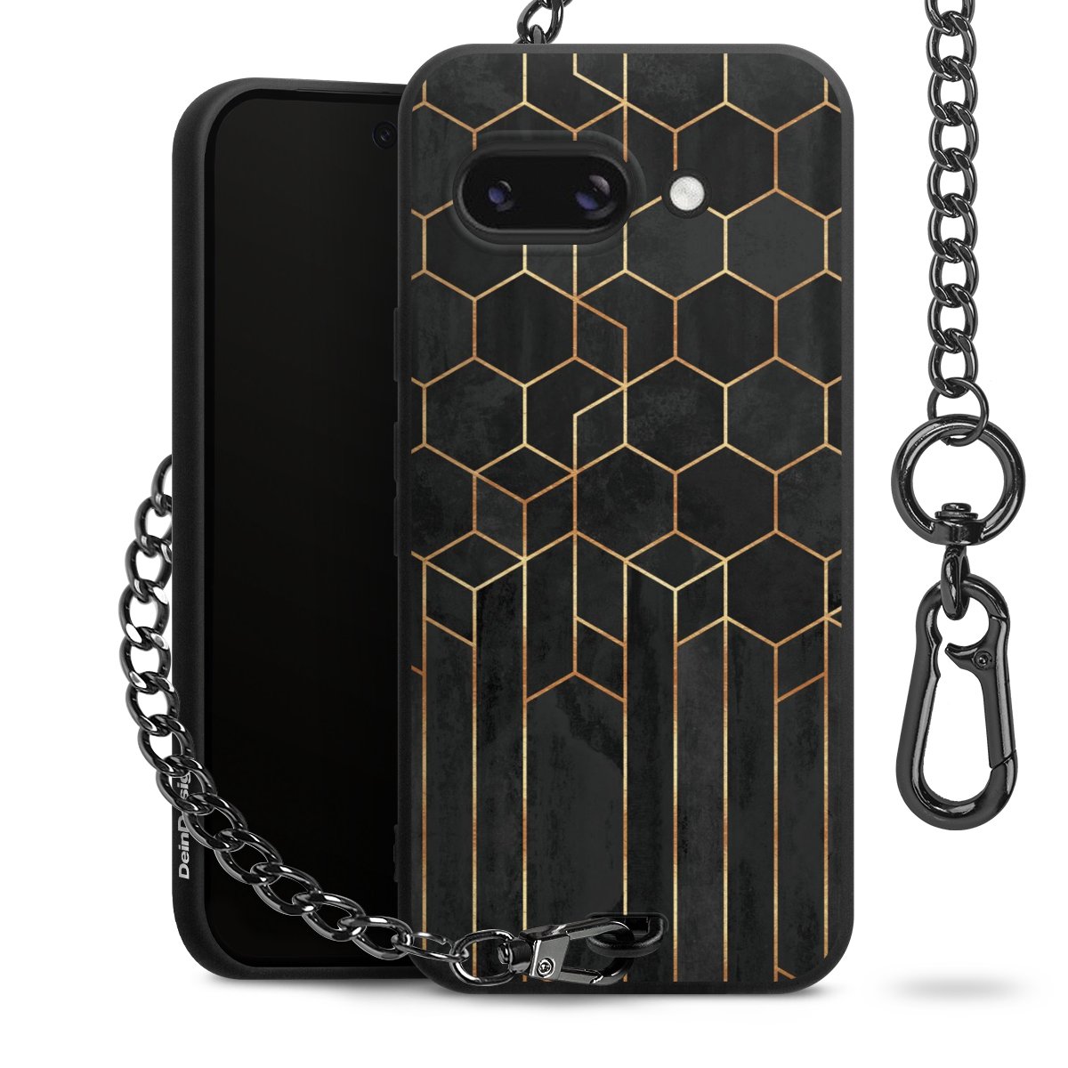 Die mattschwarze Silikon-Handyhülle besteht aus robustem TPU (thermoplastisches Polyurethan). Sie ist flexibel und schützt Dein Smartphone vor Stößen und Kratzern. Die Kette sowie der Karabinerhaken sind aus Metall in Gunmetal-Optik gefertigt. Für dieses Produkt kommen ausschließlich TÜV-geprüfte Materialien zum Einsatz.