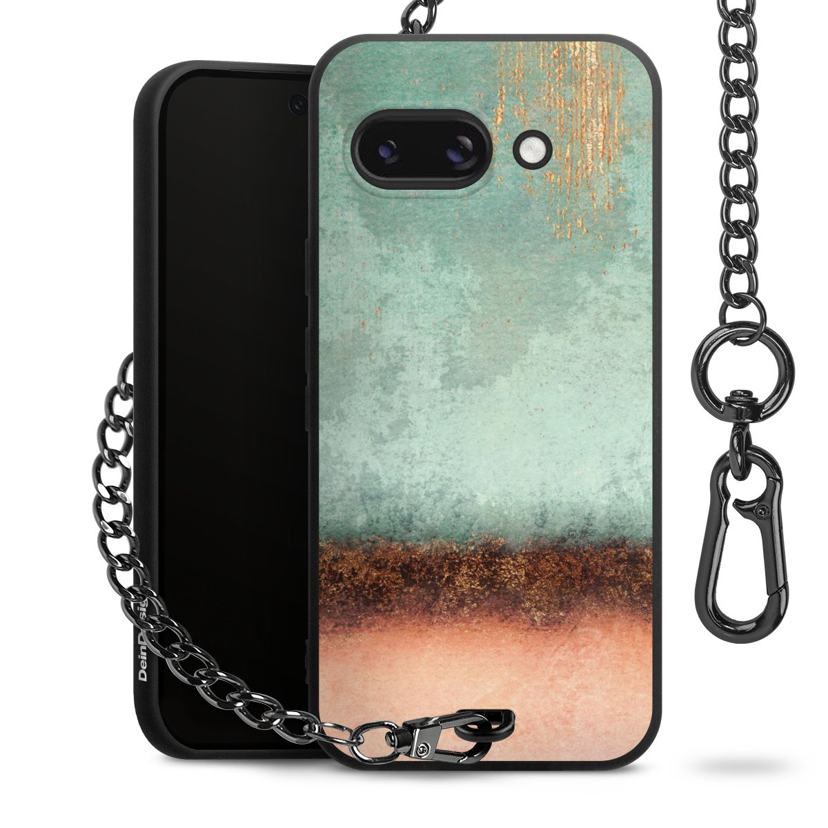 • Mattschwarze Handyhülle mit Metallkette