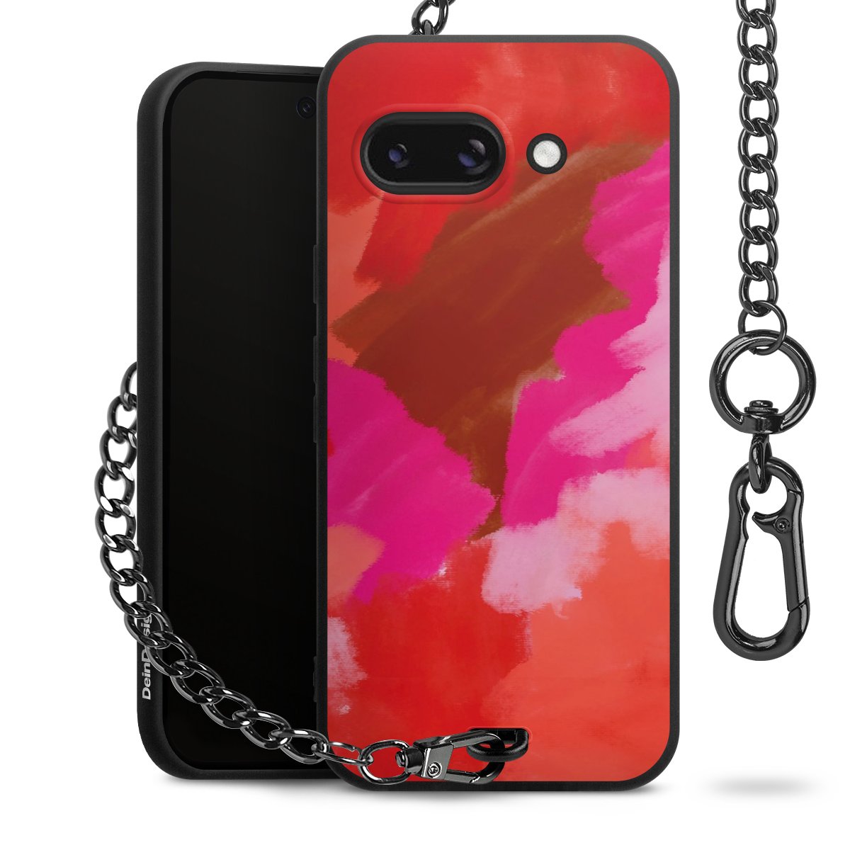 • Mattschwarze Handyhülle mit Metallkette