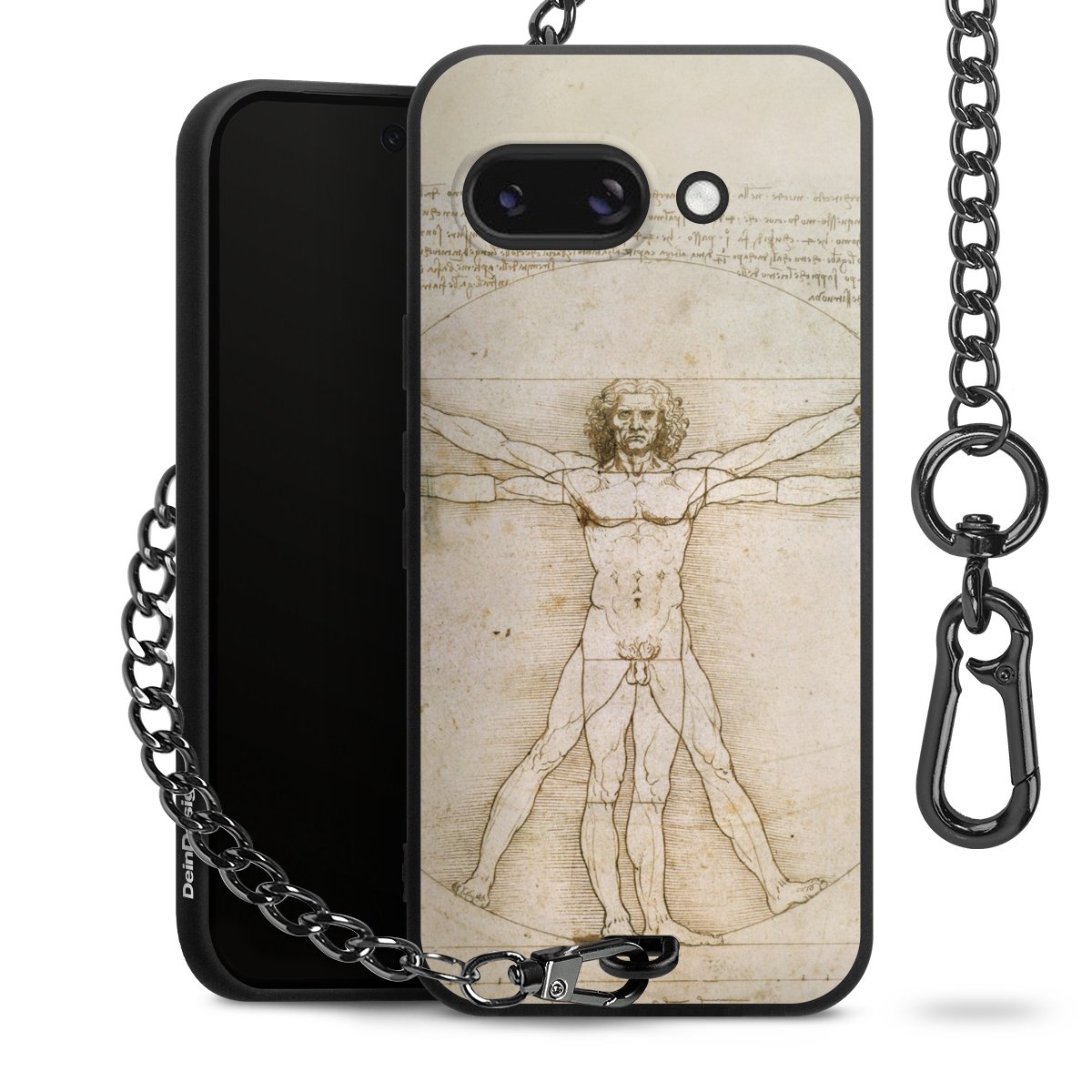 Die mattschwarze Silikon-Handyhülle besteht aus robustem TPU (thermoplastisches Polyurethan). Sie ist flexibel und schützt Dein Smartphone vor Stößen und Kratzern. Die Kette sowie der Karabinerhaken sind aus Metall in Gunmetal-Optik gefertigt. Für dieses Produkt kommen ausschließlich TÜV-geprüfte Materialien zum Einsatz.