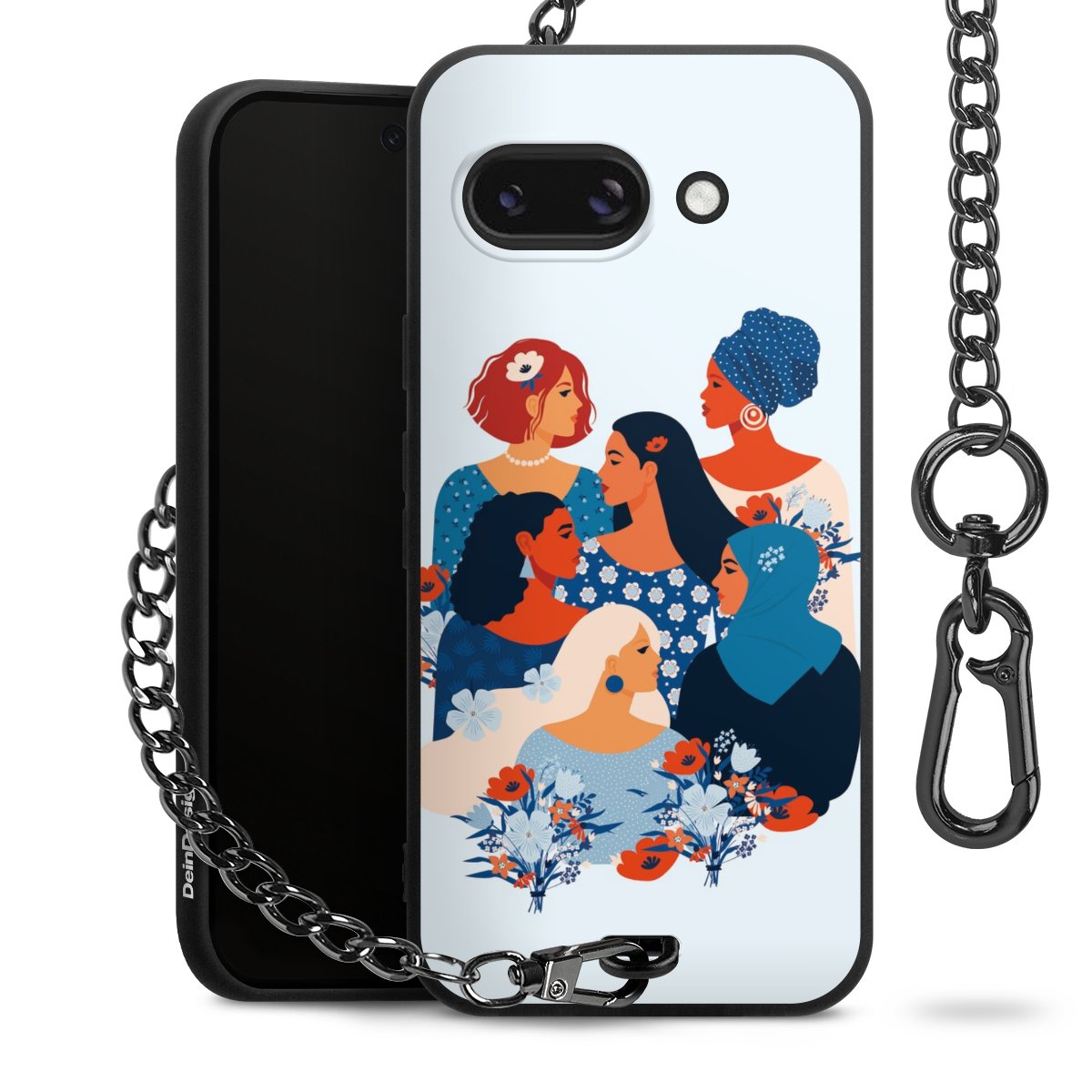 Die mattschwarze Silikon-Handyhülle besteht aus robustem TPU (thermoplastisches Polyurethan). Sie ist flexibel und schützt Dein Smartphone vor Stößen und Kratzern. Die Kette sowie der Karabinerhaken sind aus Metall in Gunmetal-Optik gefertigt. Für dieses Produkt kommen ausschließlich TÜV-geprüfte Materialien zum Einsatz.