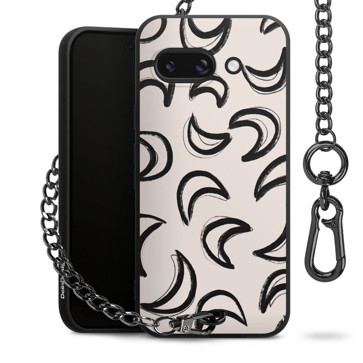 • Mattschwarze Handyhülle mit Metallkette