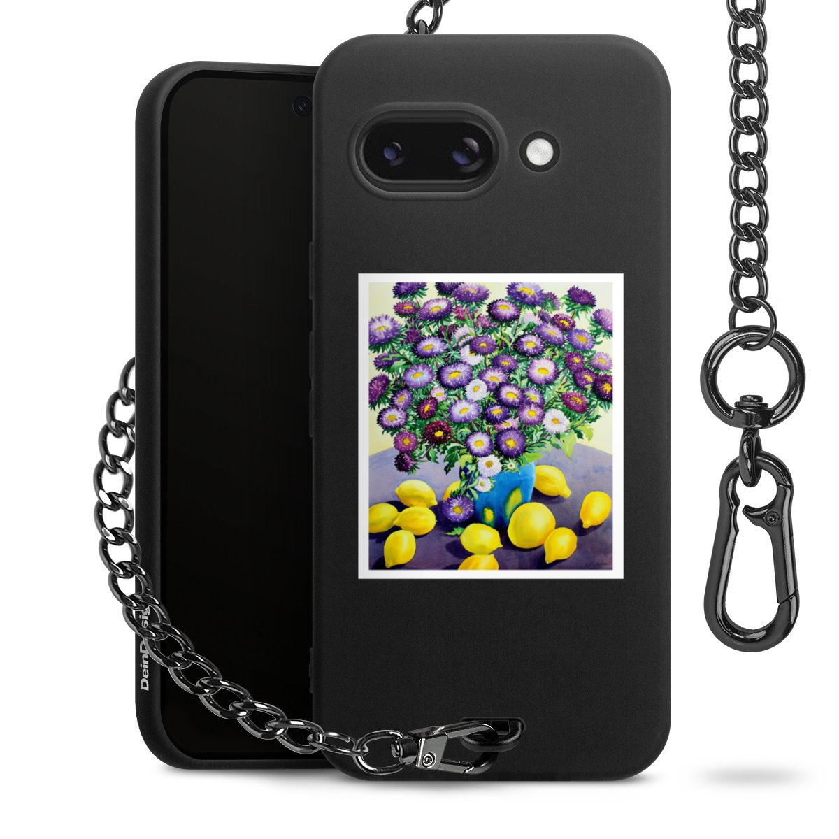 - Mattschwarze Handyhülle mit Metallkette