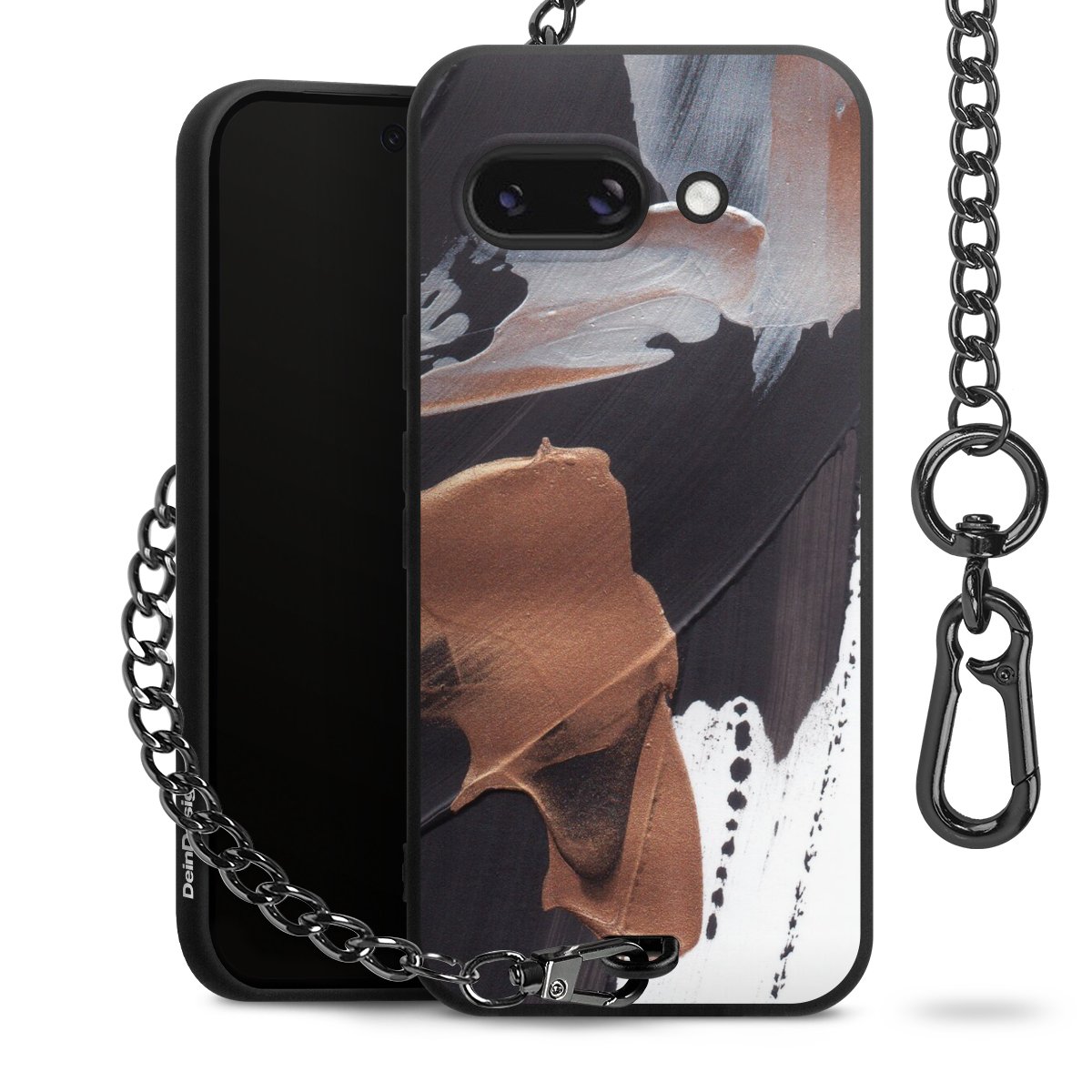 • Mattschwarze Handyhülle mit Metallkette