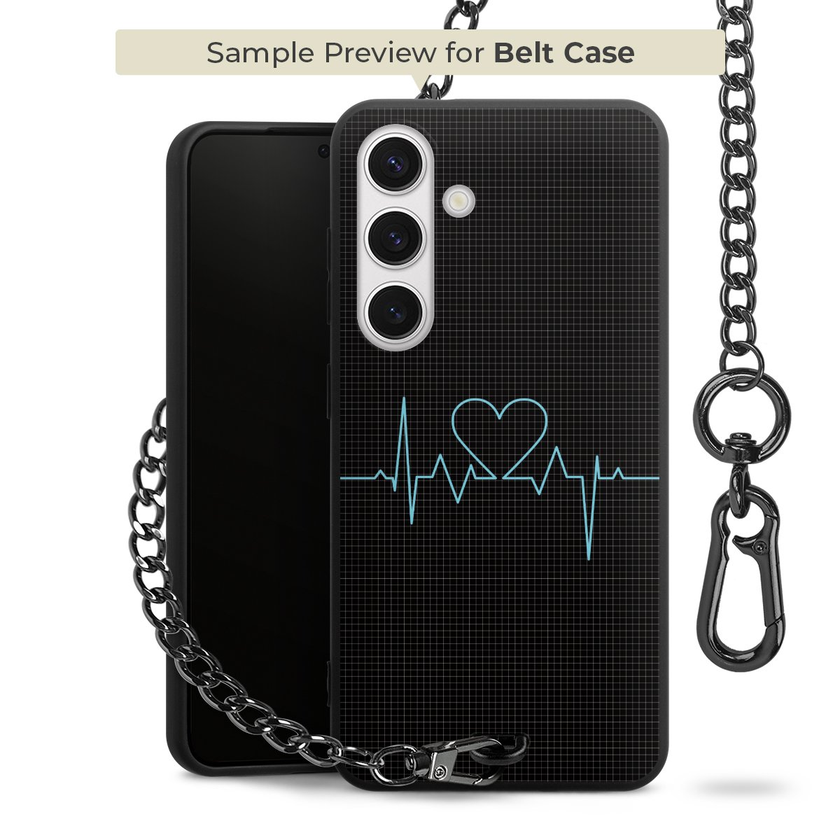 Ob im Alltag, beim Feiern mit Deinen Jungs oder auf Festivals – mit dem superpraktischen Belt Case steckst Du alle Sorgen um Diebstahl und Spider-App ganz entspannt in die Tasche. Es besteht aus einem coolen mattschwarzen Silikon Premium Case, dem Du ein individuelles Design verpassen kannst, und einer daran befestigten Kette in lässiger Gunmetal-Optik. Mit dem Karabiner auf der anderen Seite klickst Du die Kette mit einem Handgriff an Deine Gürtelschlaufe und schon ist Dein Smartphone sicher und stets griffbereit in der Hosentasche verstaut.
