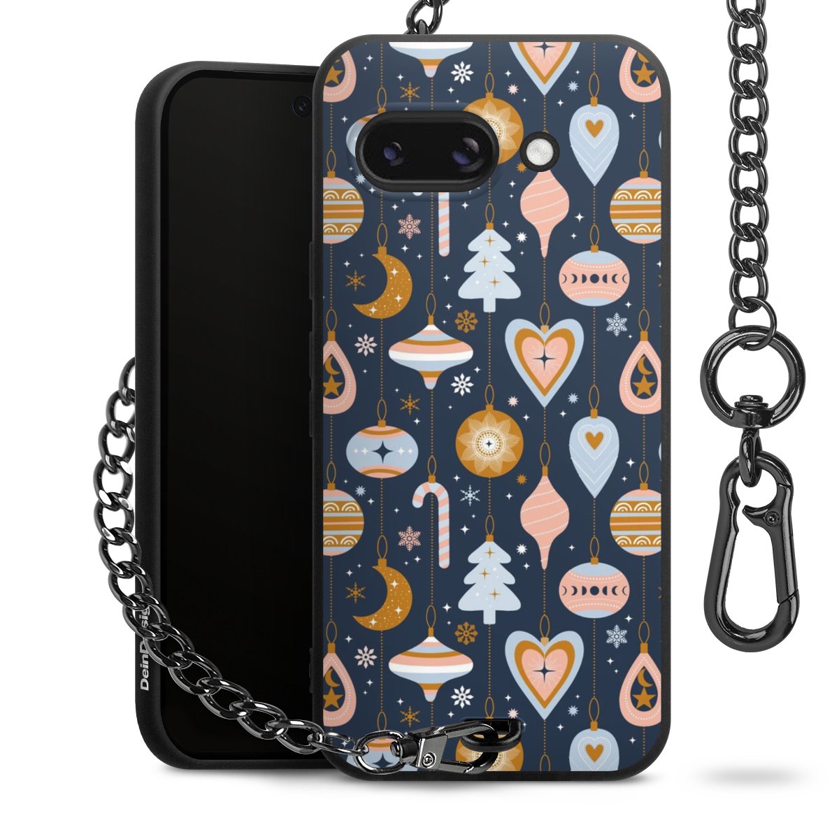 • Mattschwarze Handyhülle mit Metallkette