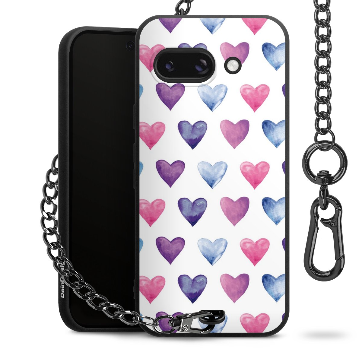 - Mattschwarze Handyhülle mit Metallkette