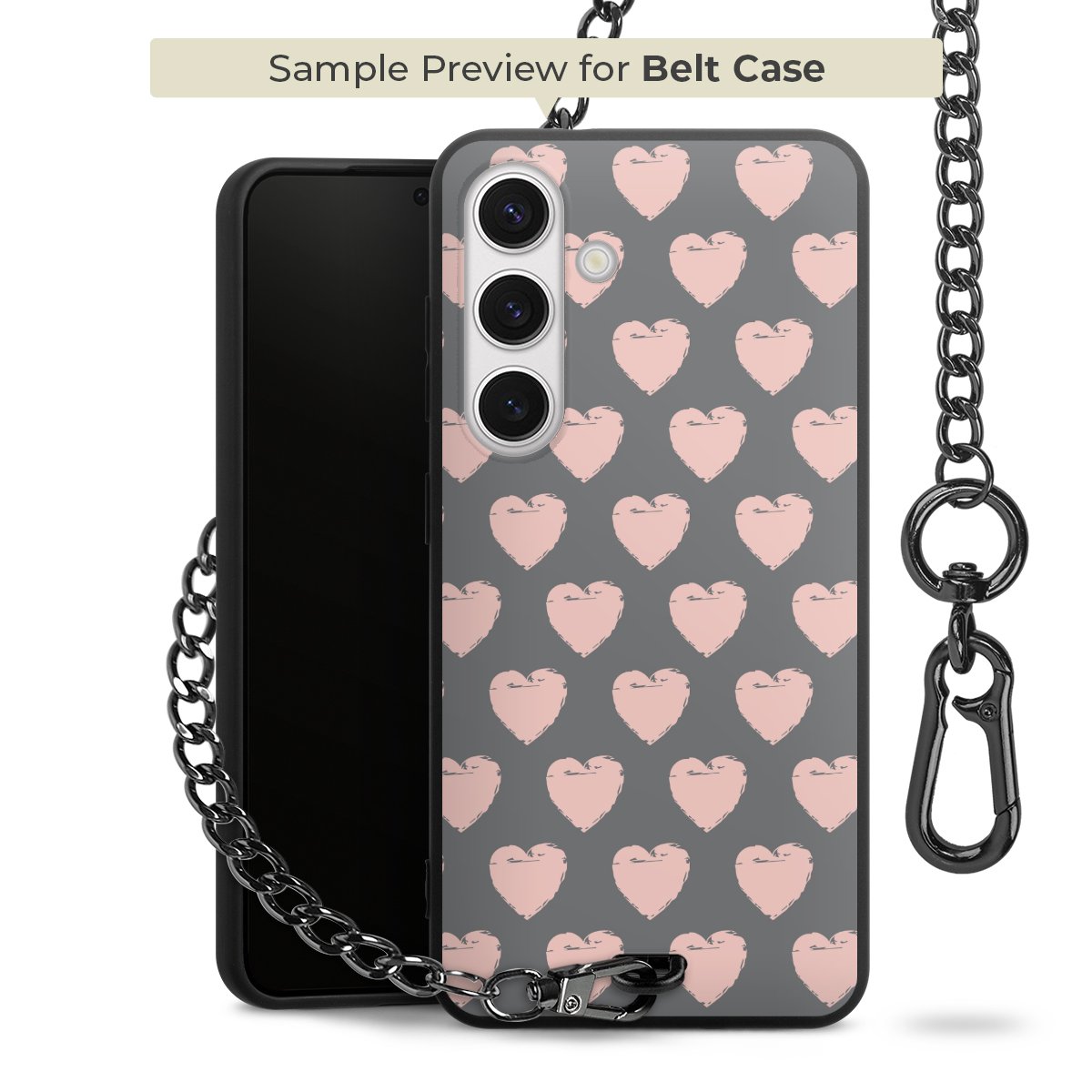 Ob im Alltag, beim Feiern mit Deinen Jungs oder auf Festivals – mit dem superpraktischen Belt Case steckst Du alle Sorgen um Diebstahl und Spider-App ganz entspannt in die Tasche. Es besteht aus einem coolen mattschwarzen Silikon Premium Case, dem Du ein individuelles Design verpassen kannst, und einer daran befestigten Kette in lässiger Gunmetal-Optik. Mit dem Karabiner auf der anderen Seite klickst Du die Kette mit einem Handgriff an Deine Gürtelschlaufe und schon ist Dein Smartphone sicher und stets griffbereit in der Hosentasche verstaut.
