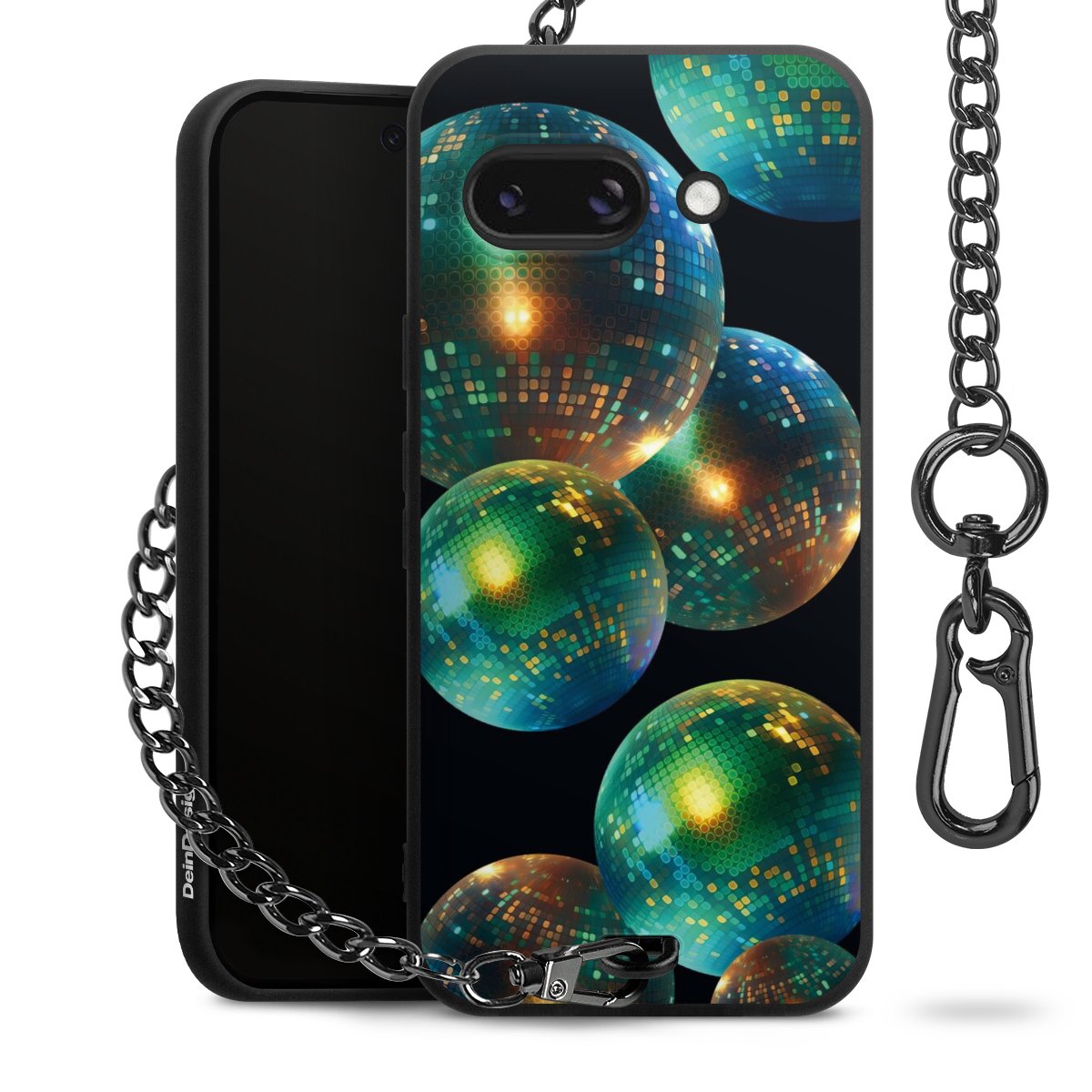 - Mattschwarze Handyhülle mit Metallkette