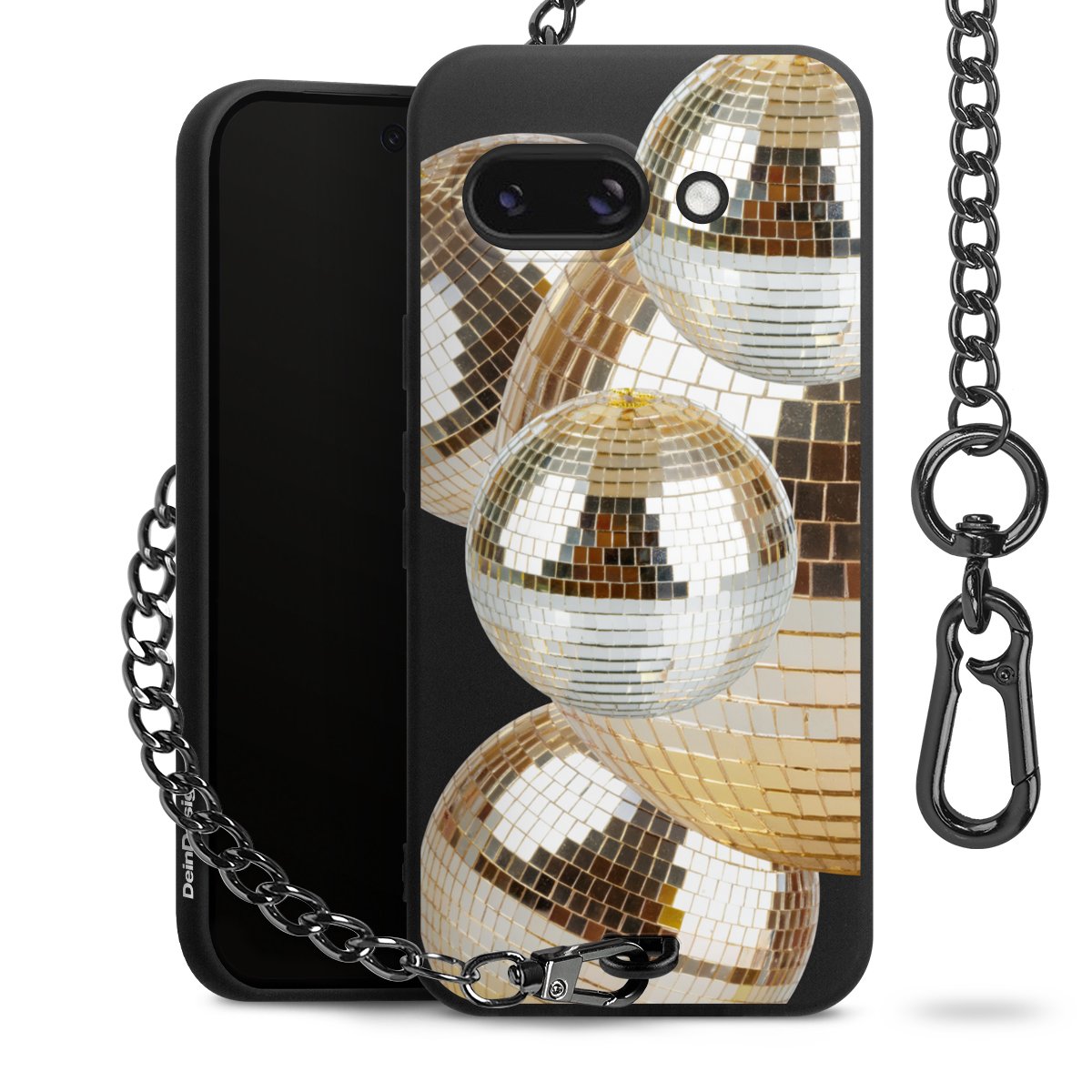 - Mattschwarze Handyhülle mit Metallkette