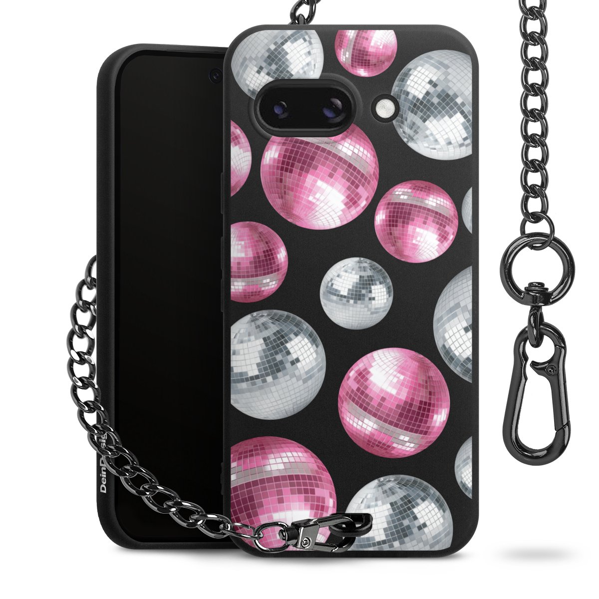 - Mattschwarze Handyhülle mit Metallkette