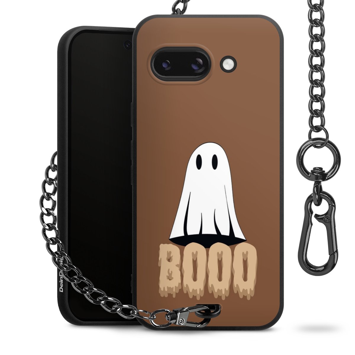 - Mattschwarze Handyhülle mit Metallkette