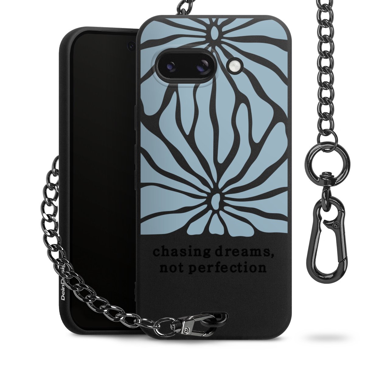 - Mattschwarze Handyhülle mit Metallkette
