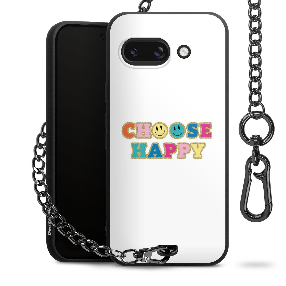 Die mattschwarze Silikon-Handyhülle besteht aus robustem TPU (thermoplastisches Polyurethan). Sie ist flexibel und schützt Dein Smartphone vor Stößen und Kratzern. Die Kette sowie der Karabinerhaken sind aus Metall in Gunmetal-Optik gefertigt. Für dieses Produkt kommen ausschließlich TÜV-geprüfte Materialien zum Einsatz.
