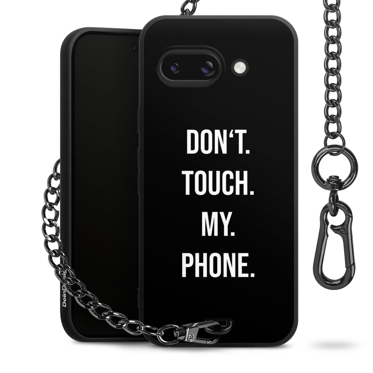 Die mattschwarze Silikon-Handyhülle besteht aus robustem TPU (thermoplastisches Polyurethan). Sie ist flexibel und schützt Dein Smartphone vor Stößen und Kratzern. Die Kette sowie der Karabinerhaken sind aus Metall in Gunmetal-Optik gefertigt. Für dieses Produkt kommen ausschließlich TÜV-geprüfte Materialien zum Einsatz.