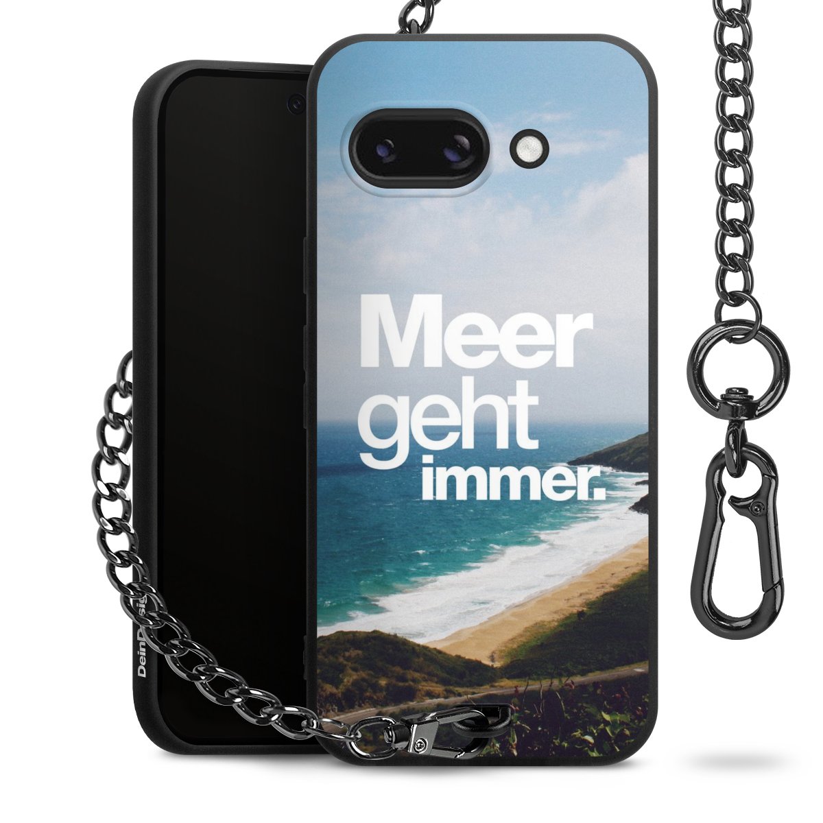 Die mattschwarze Silikon-Handyhülle besteht aus robustem TPU (thermoplastisches Polyurethan). Sie ist flexibel und schützt Dein Smartphone vor Stößen und Kratzern. Die Kette sowie der Karabinerhaken sind aus Metall in Gunmetal-Optik gefertigt. Für dieses Produkt kommen ausschließlich TÜV-geprüfte Materialien zum Einsatz.