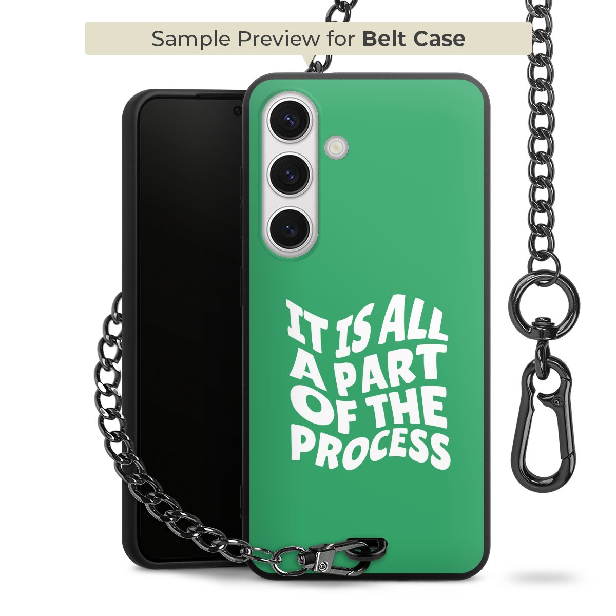 Ob im Alltag, beim Feiern mit Deinen Jungs oder auf Festivals – mit dem superpraktischen Belt Case steckst Du alle Sorgen um Diebstahl und Spider-App ganz entspannt in die Tasche. Es besteht aus einem coolen mattschwarzen Silikon Premium Case, dem Du ein individuelles Design verpassen kannst, und einer daran befestigten Kette in lässiger Gunmetal-Optik. Mit dem Karabiner auf der anderen Seite klickst Du die Kette mit einem Handgriff an Deine Gürtelschlaufe und schon ist Dein Smartphone sicher und stets griffbereit in der Hosentasche verstaut.