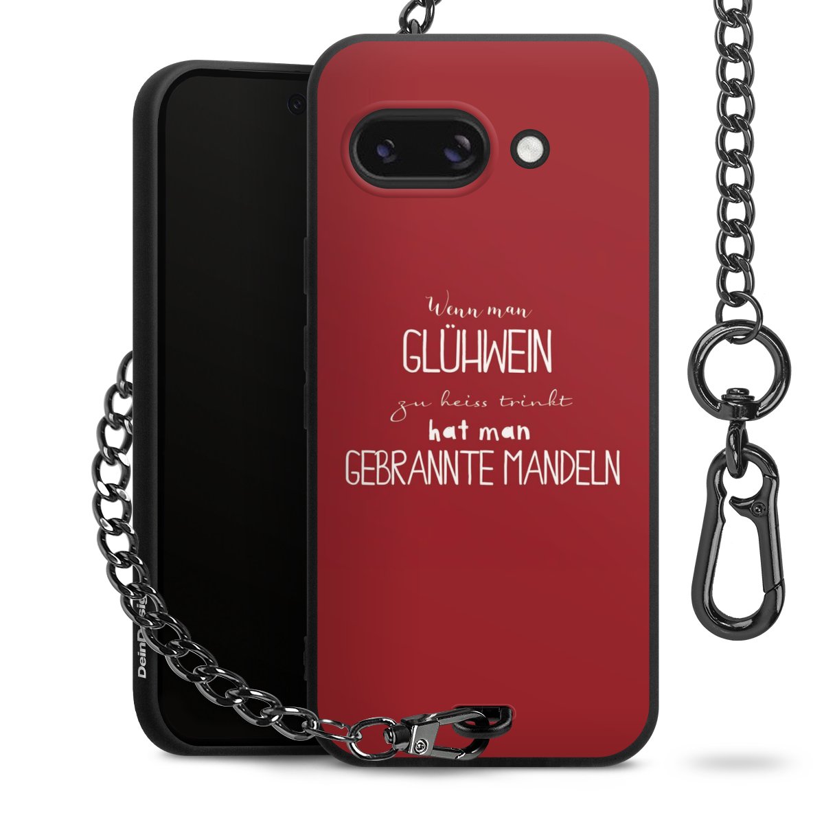 Die mattschwarze Silikon-Handyhülle besteht aus robustem TPU (thermoplastisches Polyurethan). Sie ist flexibel und schützt Dein Smartphone vor Stößen und Kratzern. Die Kette sowie der Karabinerhaken sind aus Metall in Gunmetal-Optik gefertigt. Für dieses Produkt kommen ausschließlich TÜV-geprüfte Materialien zum Einsatz.
