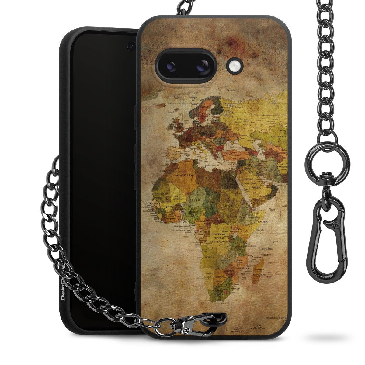 - Mattschwarze Handyhülle mit Metallkette