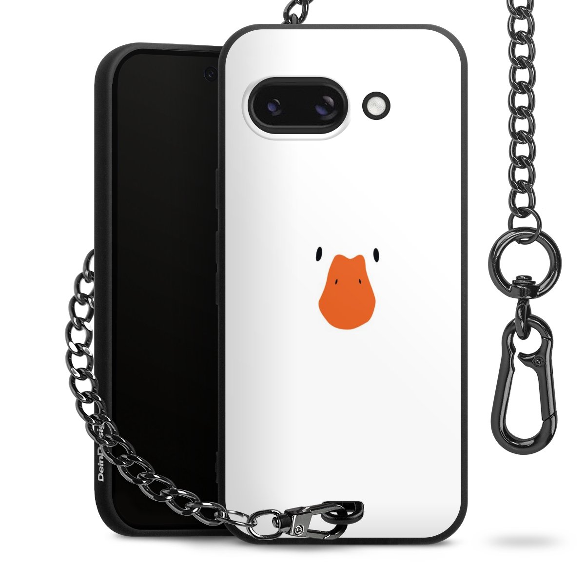 Die mattschwarze Silikon-Handyhülle besteht aus robustem TPU (thermoplastisches Polyurethan). Sie ist flexibel und schützt Dein Smartphone vor Stößen und Kratzern. Die Kette sowie der Karabinerhaken sind aus Metall in Gunmetal-Optik gefertigt. Für dieses Produkt kommen ausschließlich TÜV-geprüfte Materialien zum Einsatz.