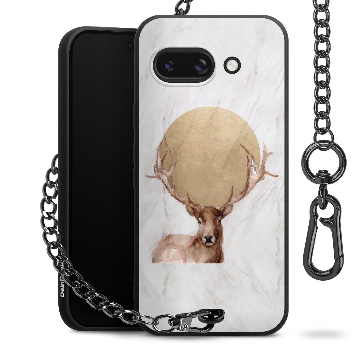Die mattschwarze Silikon-Handyhülle besteht aus robustem TPU (thermoplastisches Polyurethan). Sie ist flexibel und schützt Dein Smartphone vor Stößen und Kratzern. Die Kette sowie der Karabinerhaken sind aus Metall in Gunmetal-Optik gefertigt. Für dieses Produkt kommen ausschließlich TÜV-geprüfte Materialien zum Einsatz.