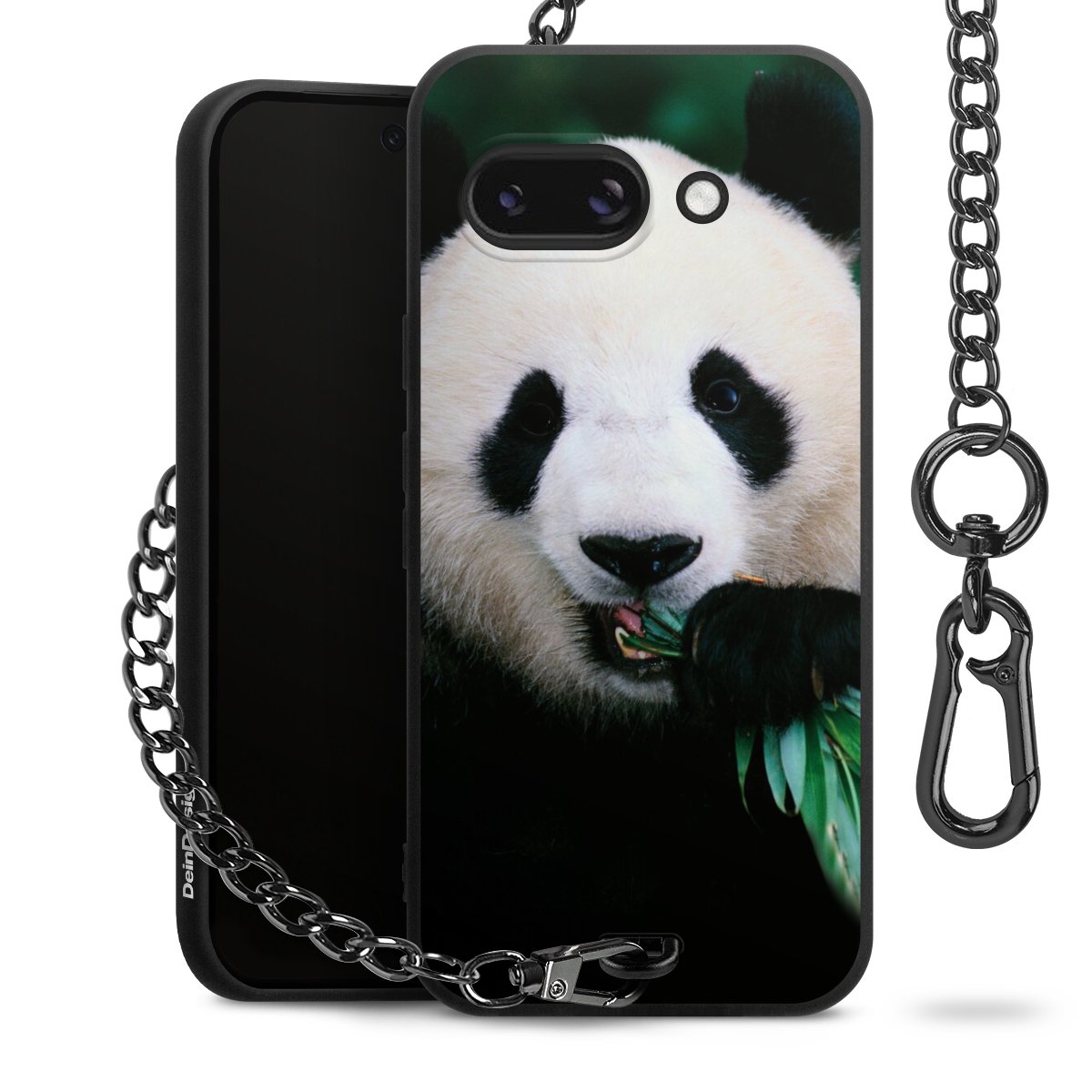 - Mattschwarze Handyhülle mit Metallkette