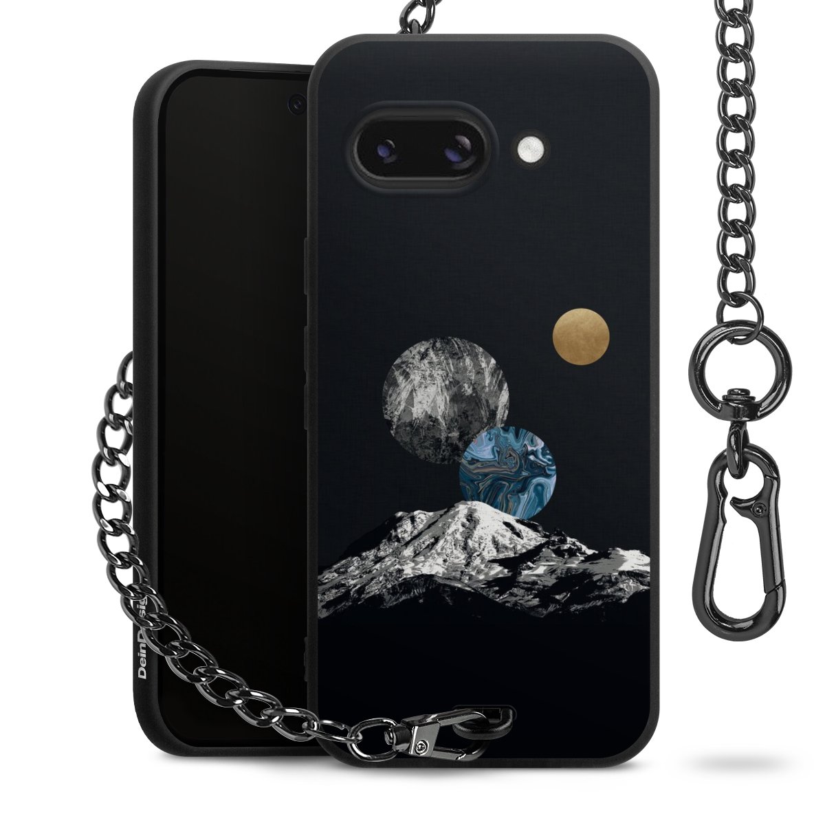 • Mattschwarze Handyhülle mit Metallkette