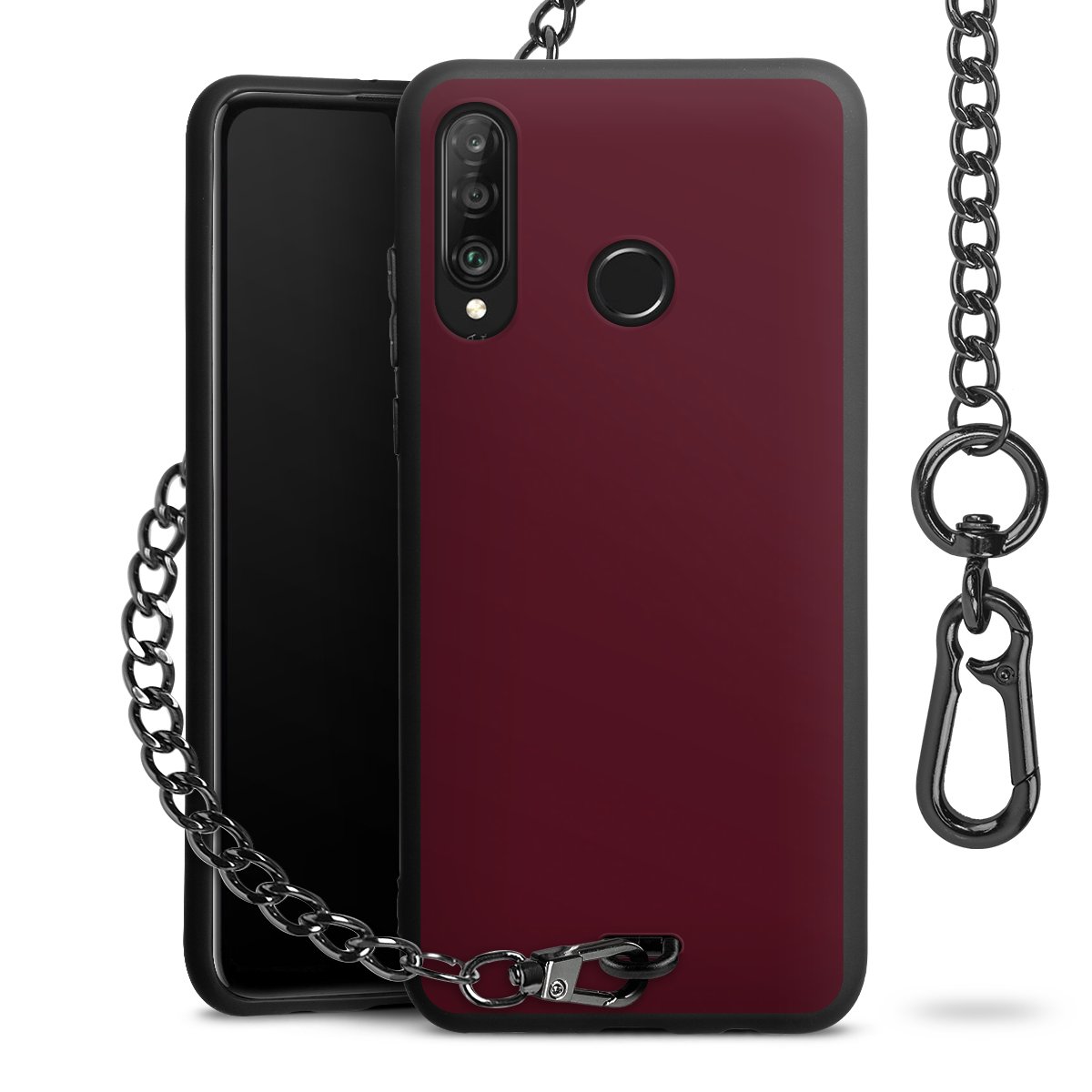 - Mattschwarze Handyhülle mit Metallkette