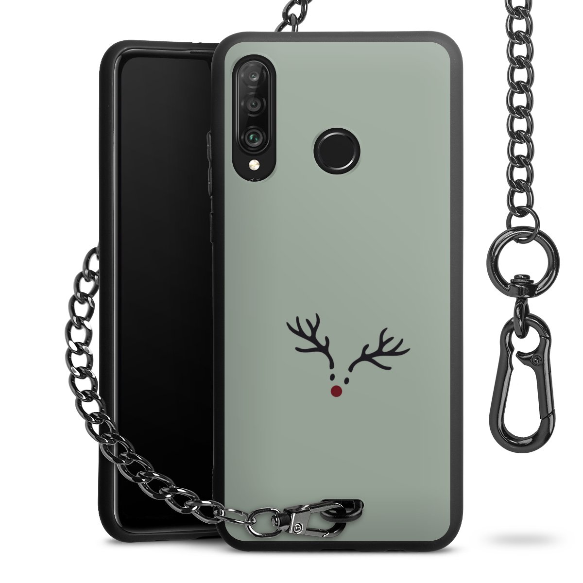 Die Handyhülle verfügt über eine mittig am unteren Rand platzierte Öse, an der die Metallkette stabil befestigt ist. Bestelle die Hülle einfach für Dein Smartphone-Modell, dann passt sie wie angegossen und Du brauchst sie bloß einmal anzudrücken. Handy in die Tasche, Karabiner an den Hosenbund – schon kann die Party starten.