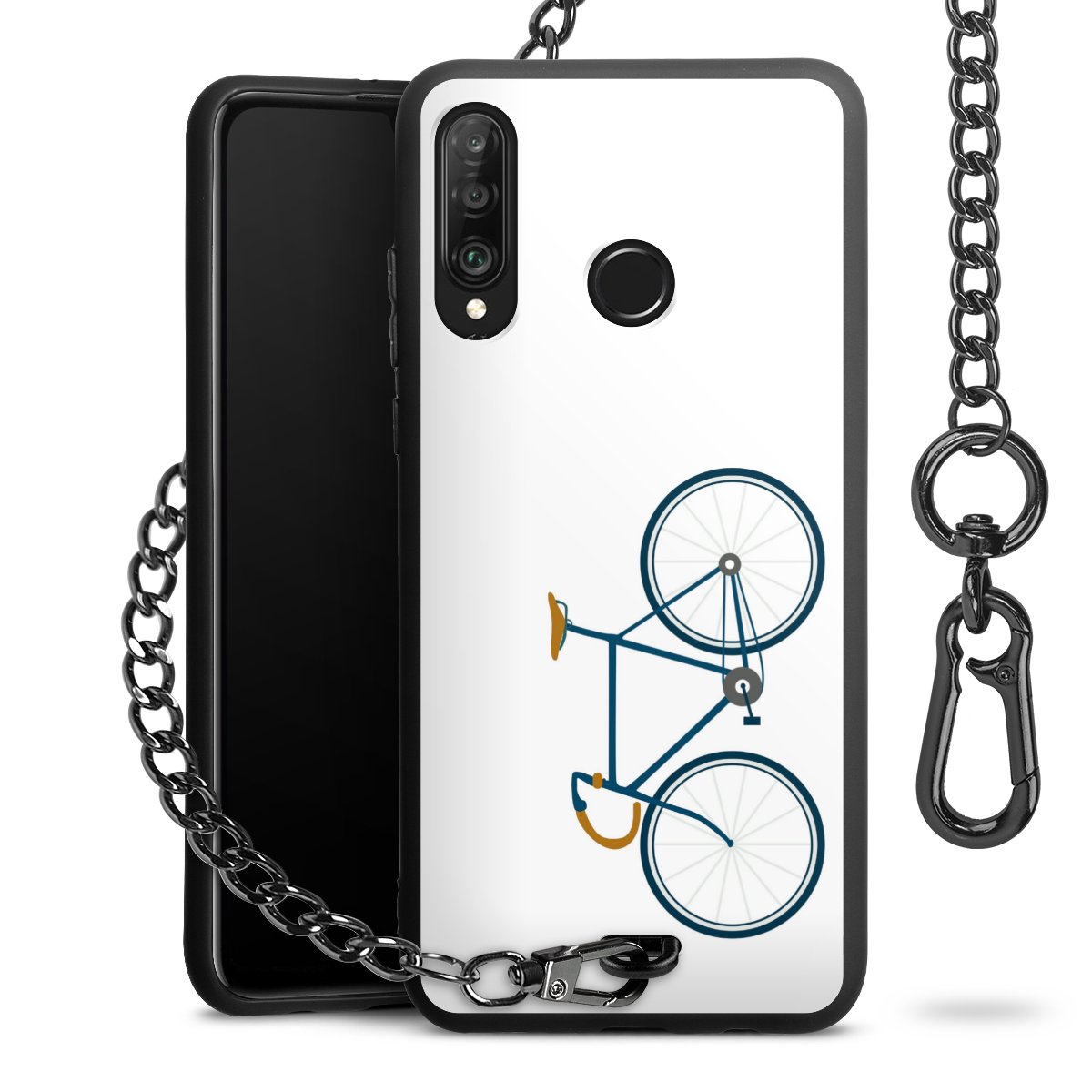 Die Handyhülle verfügt über eine mittig am unteren Rand platzierte Öse, an der die Metallkette stabil befestigt ist. Bestelle die Hülle einfach für Dein Smartphone-Modell, dann passt sie wie angegossen und Du brauchst sie bloß einmal anzudrücken. Handy in die Tasche, Karabiner an den Hosenbund – schon kann die Party starten.