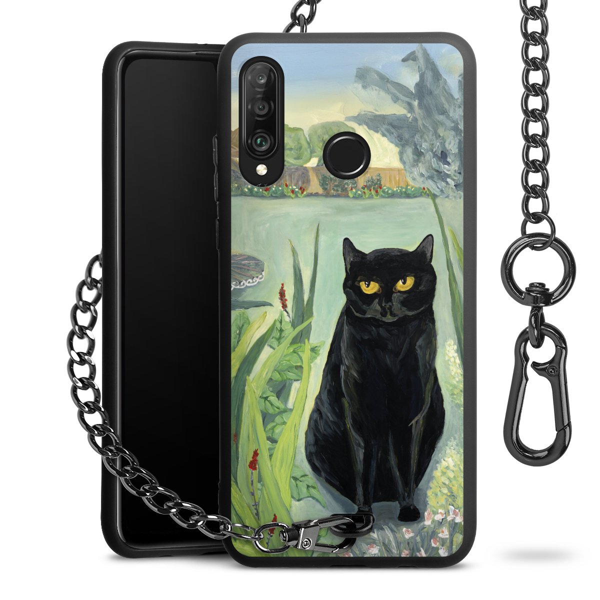 • Mattschwarze Handyhülle mit Metallkette