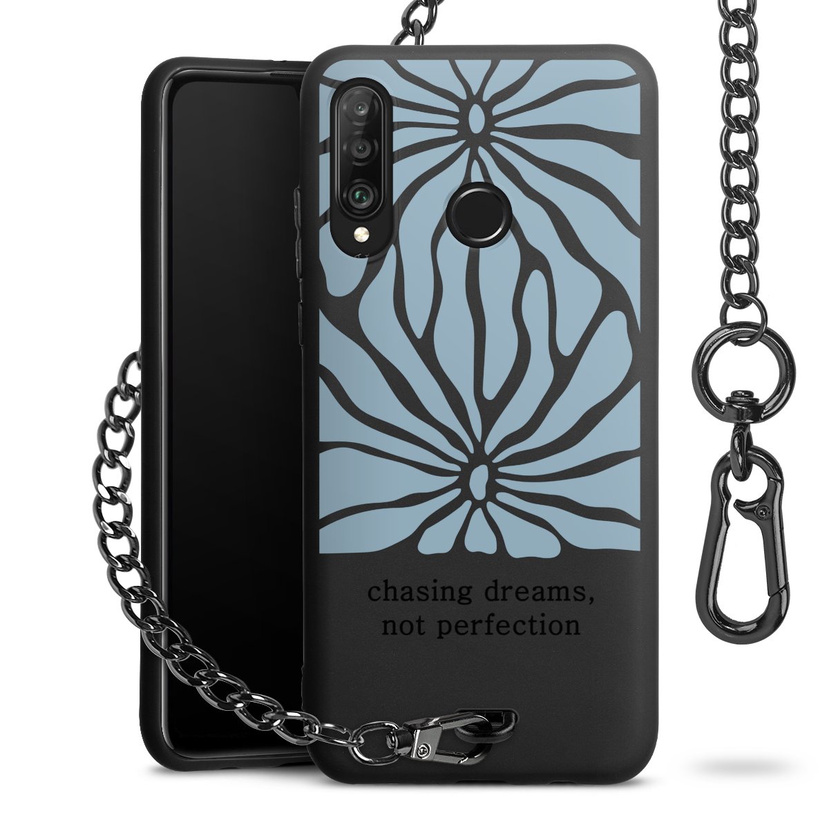 - Mattschwarze Handyhülle mit Metallkette