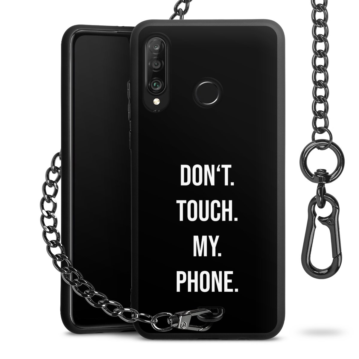 Die mattschwarze Silikon-Handyhülle besteht aus robustem TPU (thermoplastisches Polyurethan). Sie ist flexibel und schützt Dein Smartphone vor Stößen und Kratzern. Die Kette sowie der Karabinerhaken sind aus Metall in Gunmetal-Optik gefertigt. Für dieses Produkt kommen ausschließlich TÜV-geprüfte Materialien zum Einsatz.