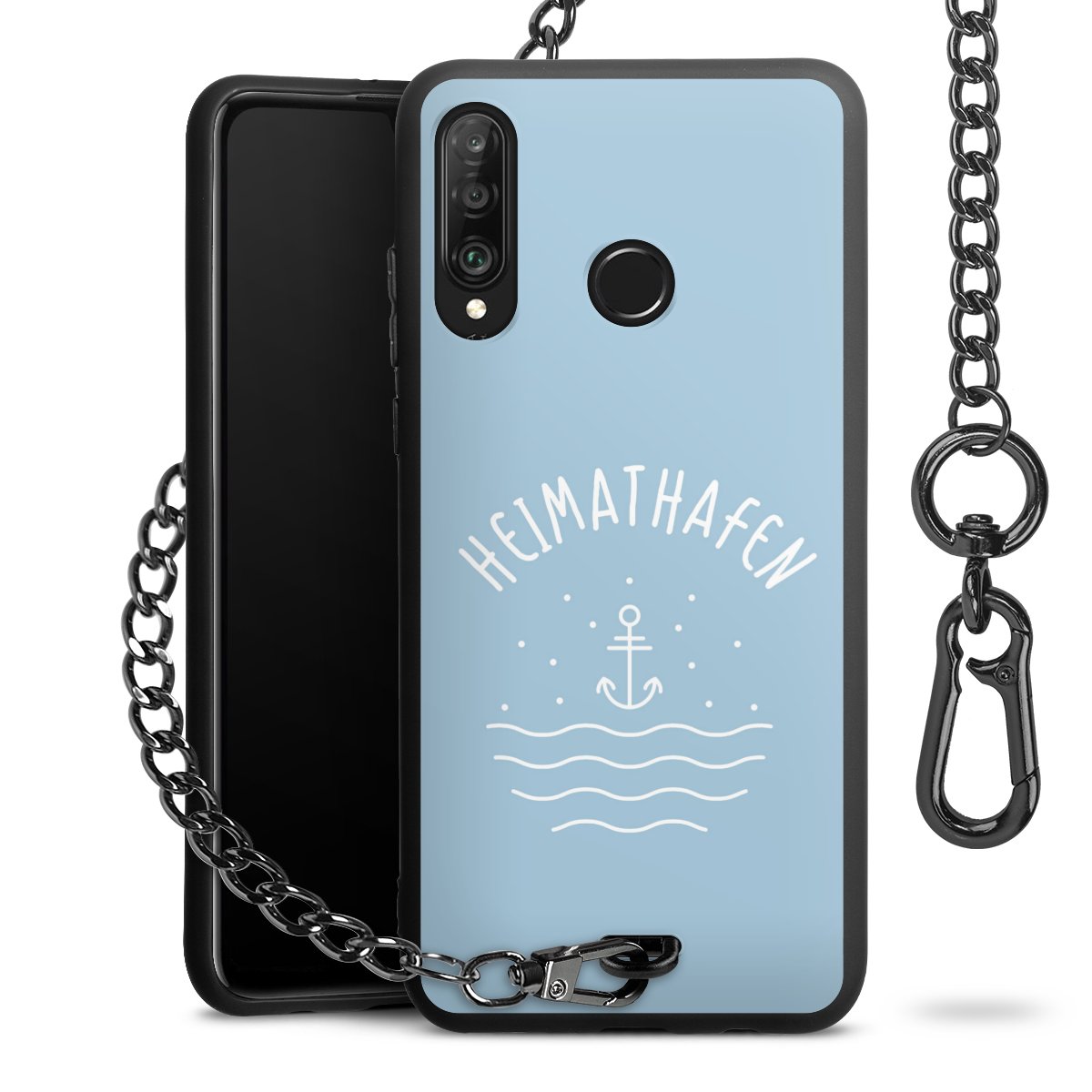 Die mattschwarze Silikon-Handyhülle besteht aus robustem TPU (thermoplastisches Polyurethan). Sie ist flexibel und schützt Dein Smartphone vor Stößen und Kratzern. Die Kette sowie der Karabinerhaken sind aus Metall in Gunmetal-Optik gefertigt. Für dieses Produkt kommen ausschließlich TÜV-geprüfte Materialien zum Einsatz.