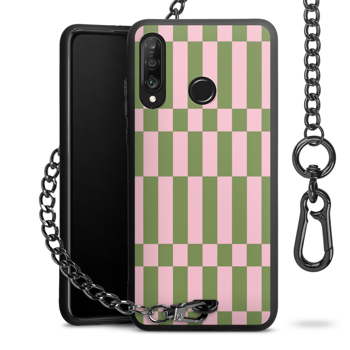 • Mattschwarze Handyhülle mit Metallkette