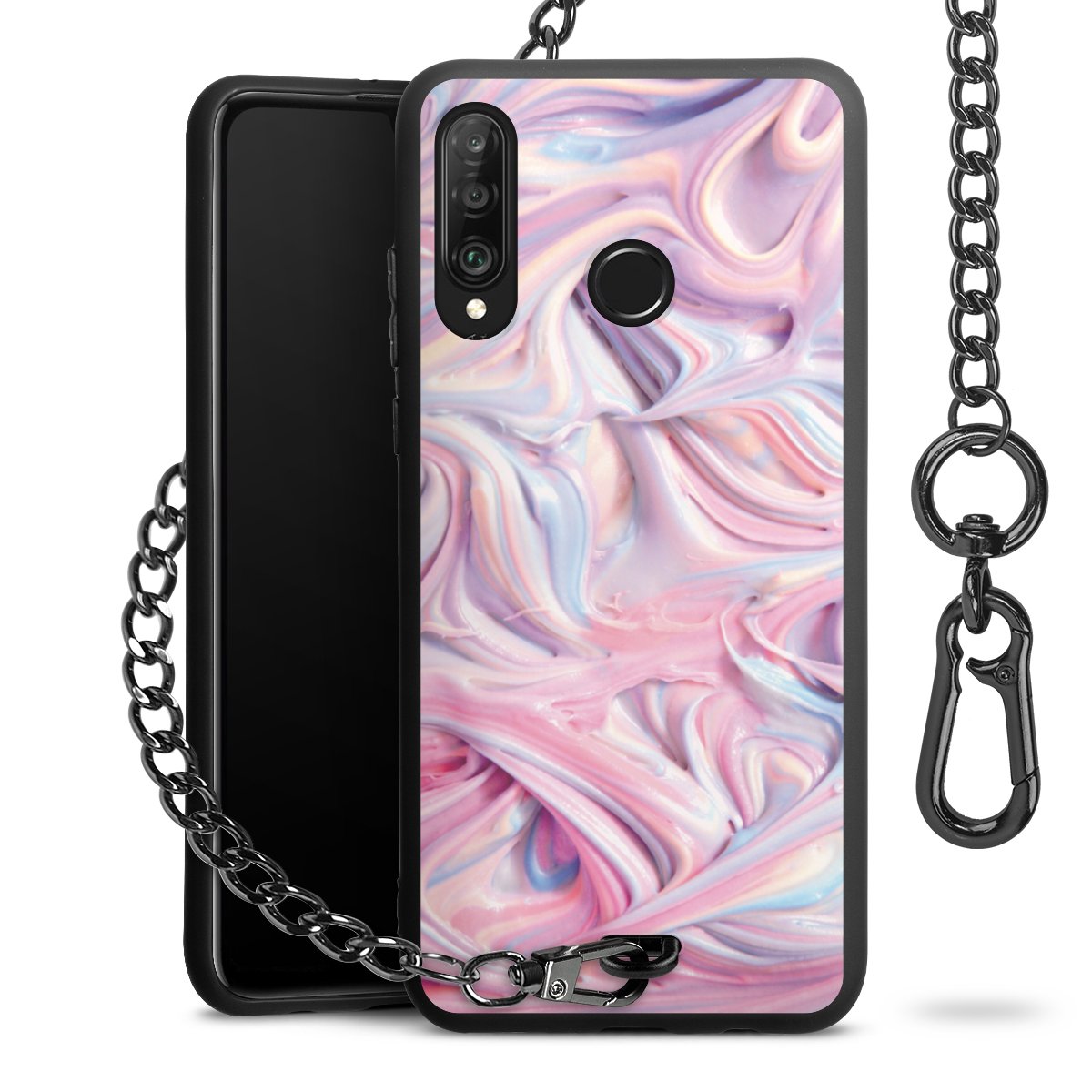 • Mattschwarze Handyhülle mit Metallkette